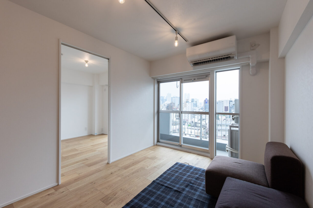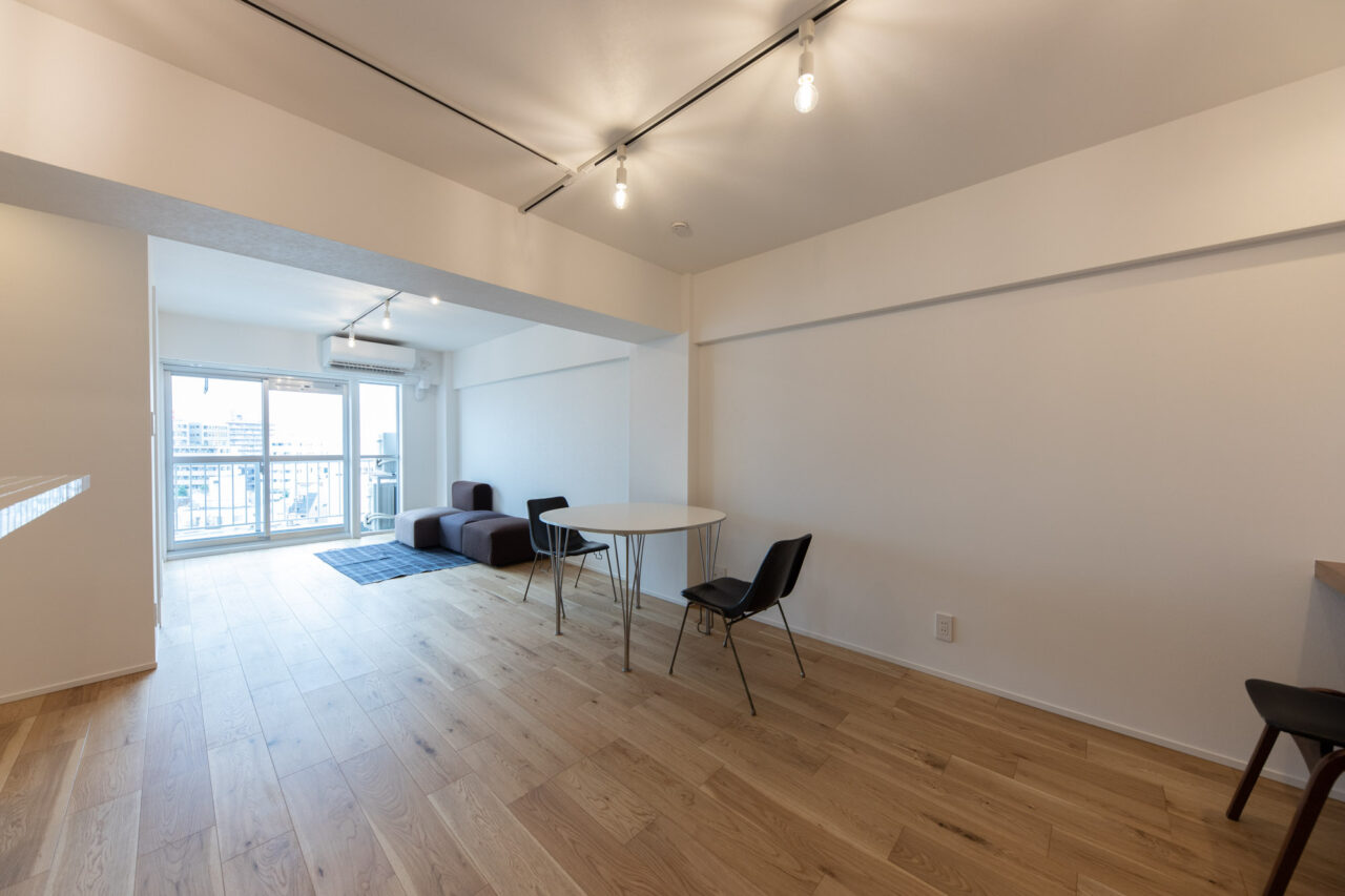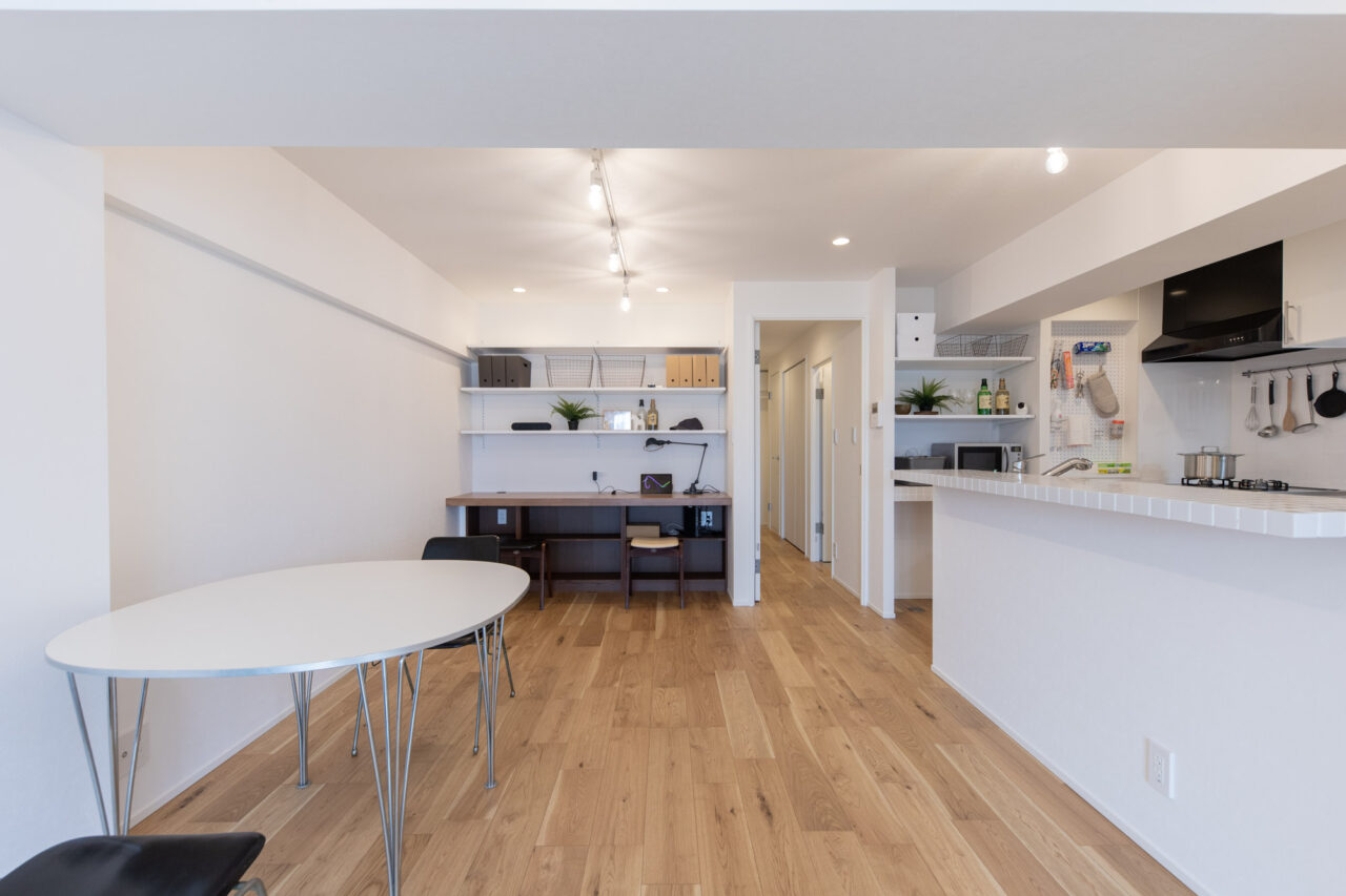 新中野駅徒歩3分、JR中野loverからの引き合いが多い人気の立地です。建築後50年以上時を重ねた建物はこれまで大小さまざまな修繕を適宜施してきました。室内は11階建の最上階、西新宿高層ビル街を正面に望み、遮る建物がなくまれにみる抜け感が素晴らしい眺望です。室内はデスクスペース付きの広々リビング、回遊性のあるⅡ型キッチンが特徴的な2LDKのお部屋です。