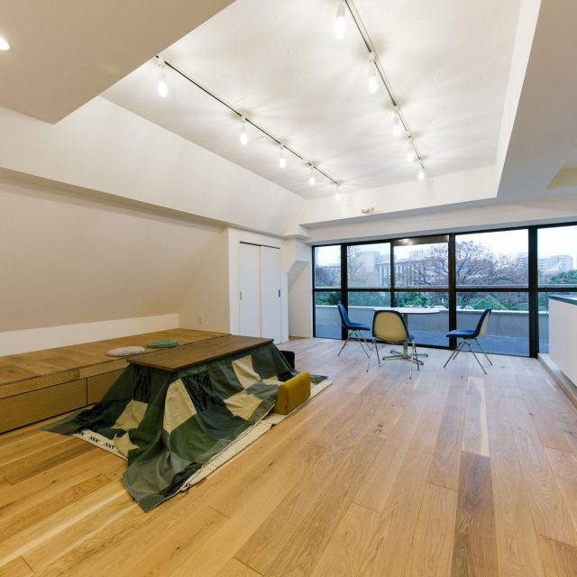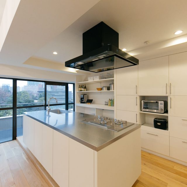 四方八方豊かな緑に囲まれた八芳園を毎日見下ろせるヴィンテージマンションです。今は紅葉のピークを過ぎ、落葉した枯淡な幹と枝は冬の訪れが感じられ、早春には新緑が鮮明に映える美しい眺め。都心での暮らしでは、至上の贅沢といっても過言でないかも? 室内は、小上がりスペースを含めて26.5JのLDK、その特等席にはドーンと構えたアイランドキッチン。寝室にはインナーテラスを設け、室内干しやインドアグリーンの手入れ等用途はいろいろ。WIC、SICなど大小さまざまな収納もあり、デザインと使い勝手を兼ね備えたお部屋です。