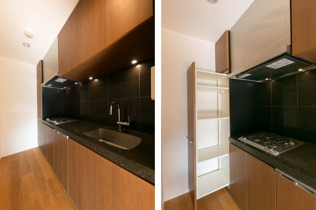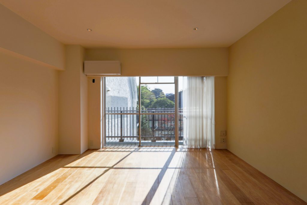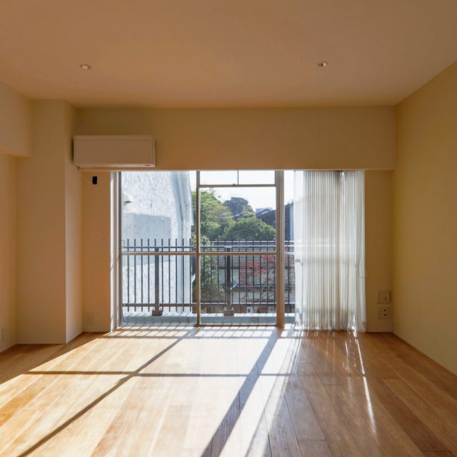 日向坂に立ち並ぶ元武家屋敷や大使館、その深い緑の大木がキリリと締まった空気感を醸し出す閑静で歴史のある住宅地です。もうすぐ築後50年、管理・修繕状態は住人の建物への愛着が感じられ、向かいがイタリア大使館、隣は三井綱町クラブという立地からも、THEヴィンテージマンションと呼ぶにふさわしい物件です。2009年にスケルトンリフォームされた室内は、スライドドアと天井、壁との計算され尽くされたおさまりが美しい。建築マニアの方には特におすすめです。