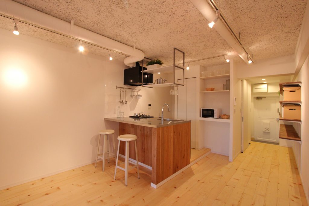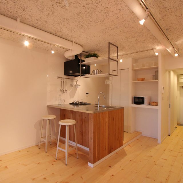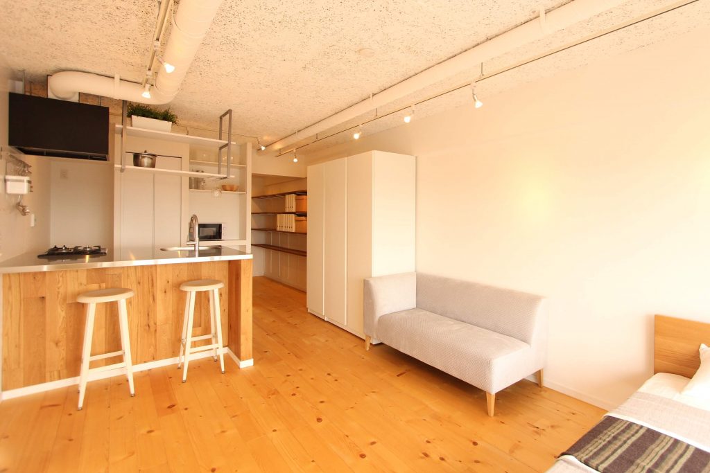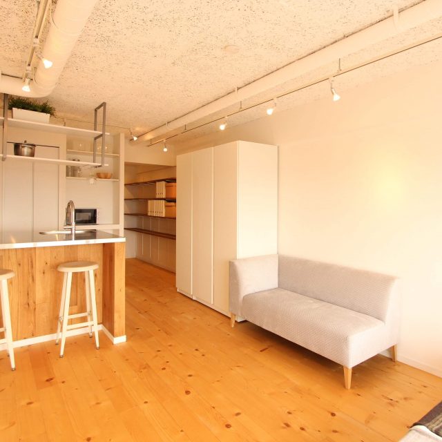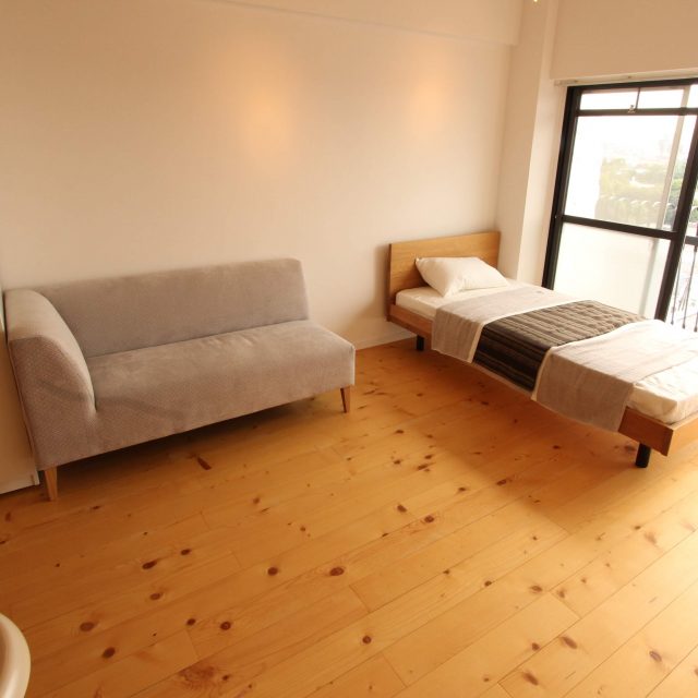駅前には東京工業大学のキャンパスがある、大岡山。落ち着いた穏やかな雰囲気の街です。駅からマンションまでの道のりはいくつかのルートがありますが、おすすめは商店街を通って行くコース。お店が立ち並び、買い物に便利です。お部屋の中は、約35㎡の1R。窓からの光が充分に差し込むため、天気のよい日中には電気をつけなくてもよいほど。フローリングはすべて無垢のパイン材を使用しているため、温かみがありながらも、開放感がある雰囲気です。