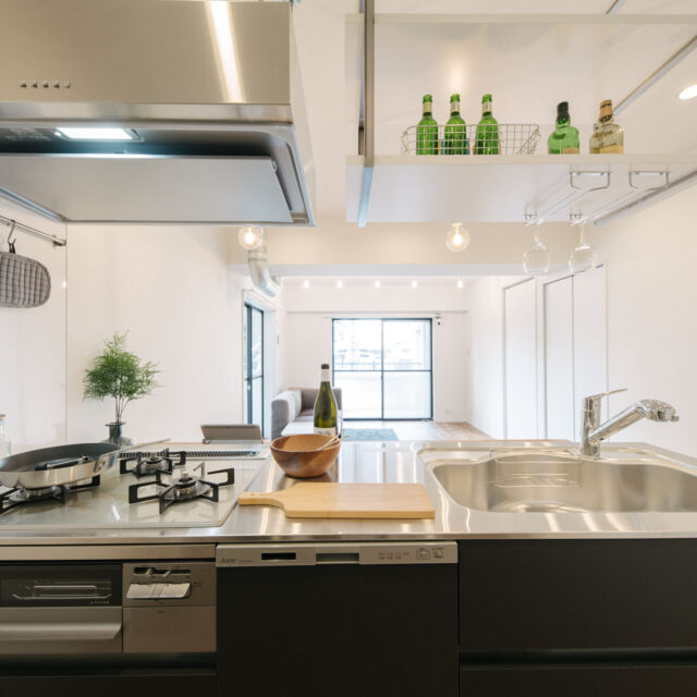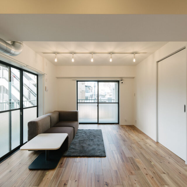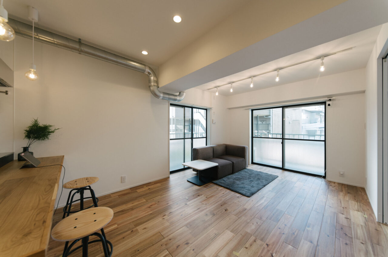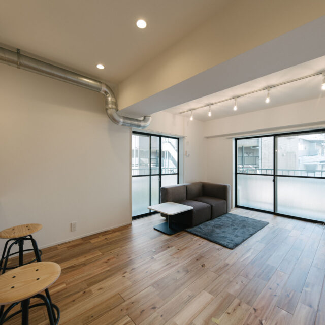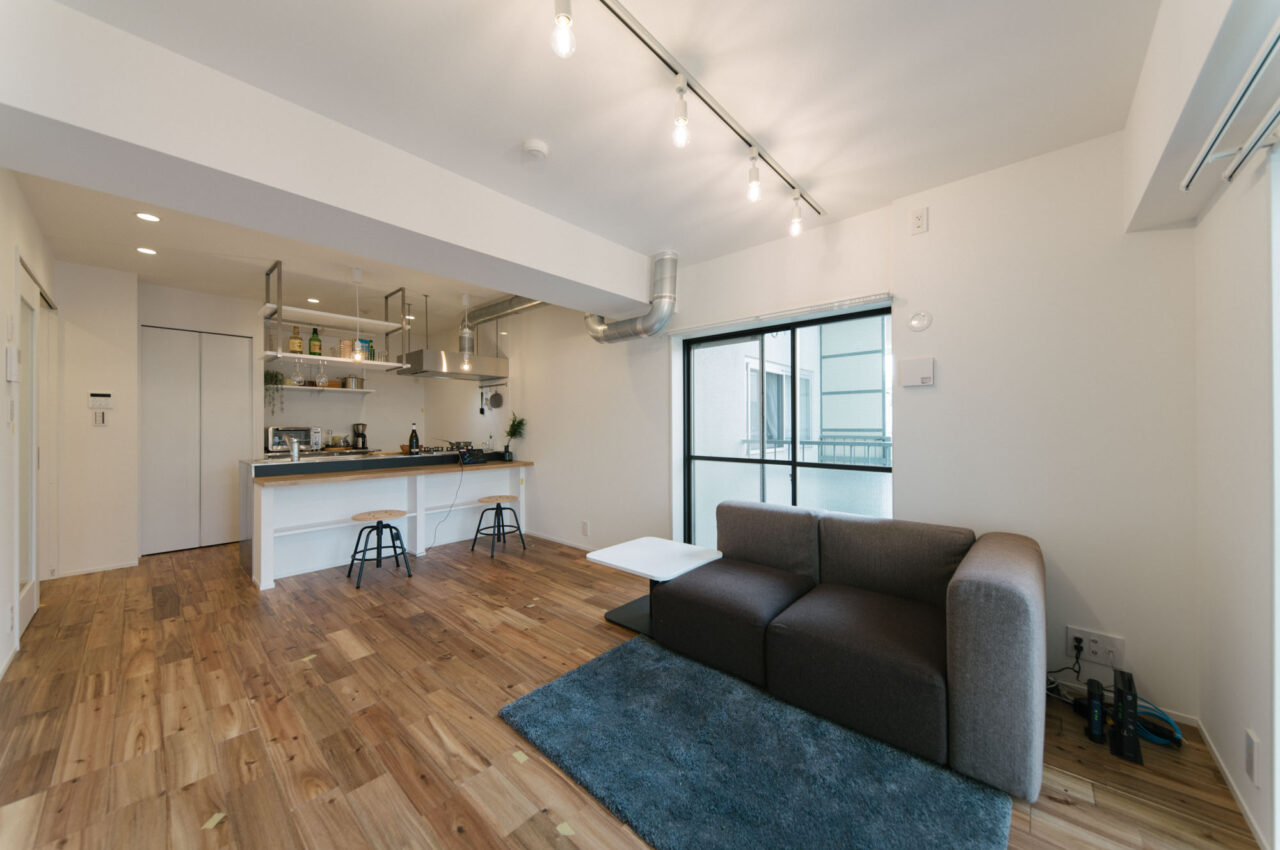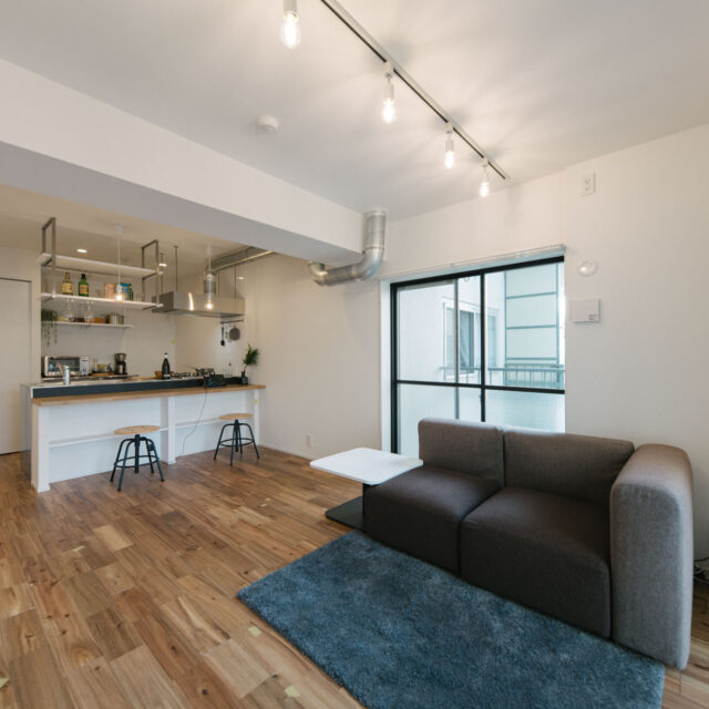 下町情緒と活気あふれる戸越銀座商店街の一本裏通り、駅からわずか徒歩3分の立地です。建物は築後56年が経過、大小さまざまな修繕を適宜繰り返してきました。室内は約43㎡の1LDK、ダイニングカウンターをドッキングさせた開放的なキッチンやその他設備を全面的に更新、玄関や廊下を最小化したから有効スペースが最大化、面積以上に広々使えるお部屋です。