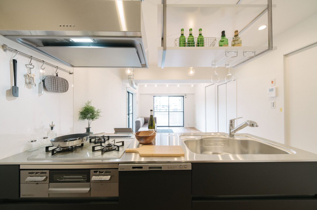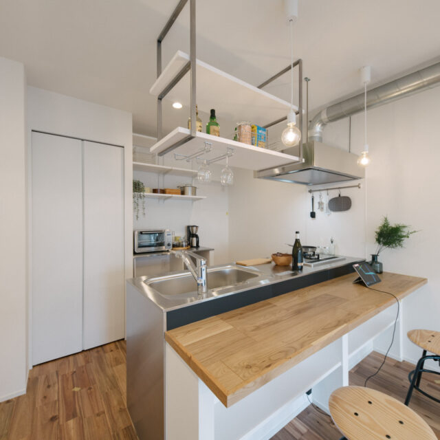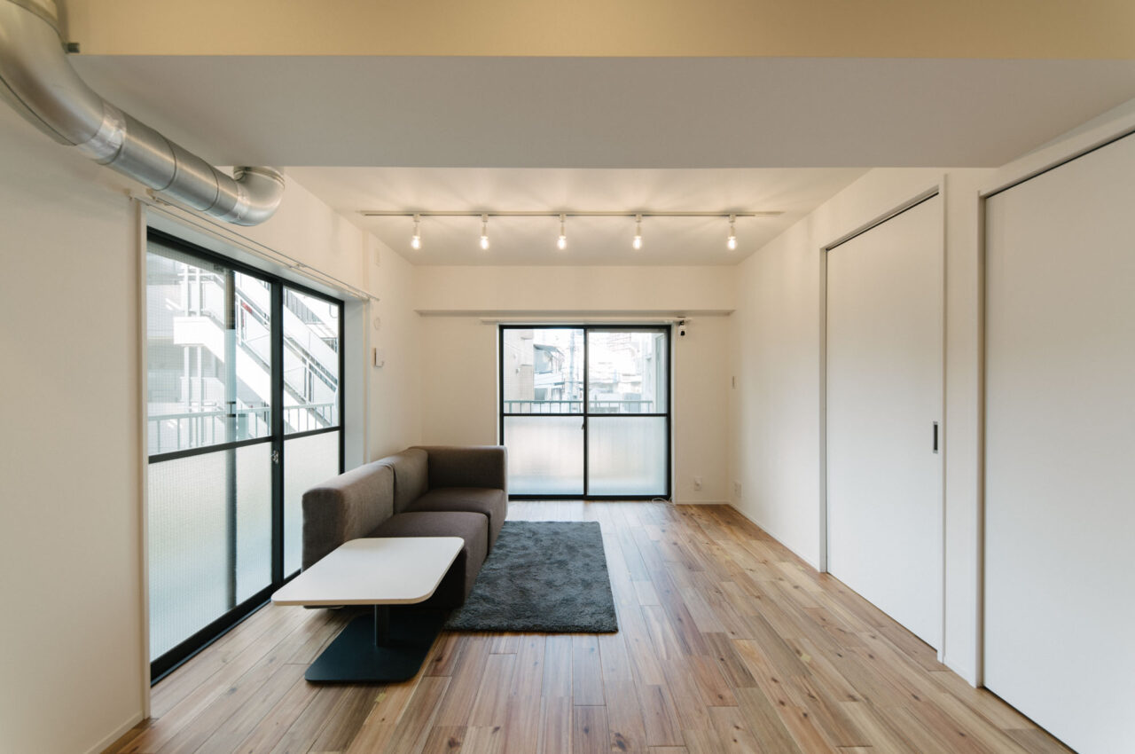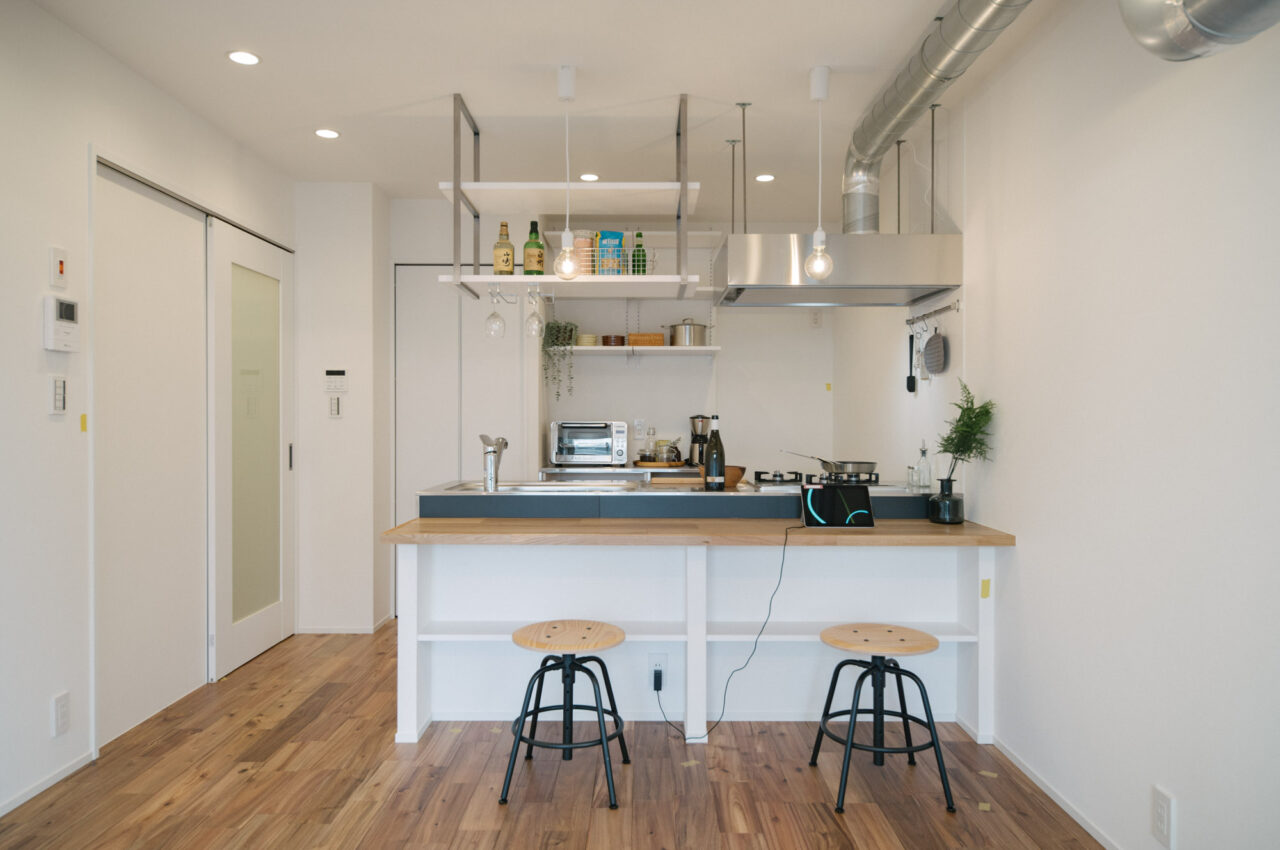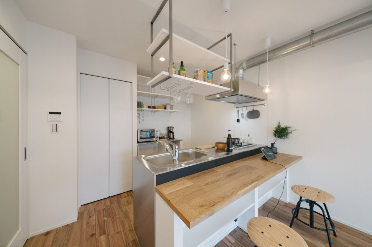 下町情緒と活気あふれる戸越銀座商店街の一本裏通り、駅からわずか徒歩3分の立地です。建物は築後56年が経過、大小さまざまな修繕を適宜繰り返してきました。室内は約43㎡の1LDK、ダイニングカウンターをドッキングさせた開放的なキッチンやその他設備を全面的に更新、玄関や廊下を最小化したから有効スペースが最大化、面積以上に広々使えるお部屋です。
