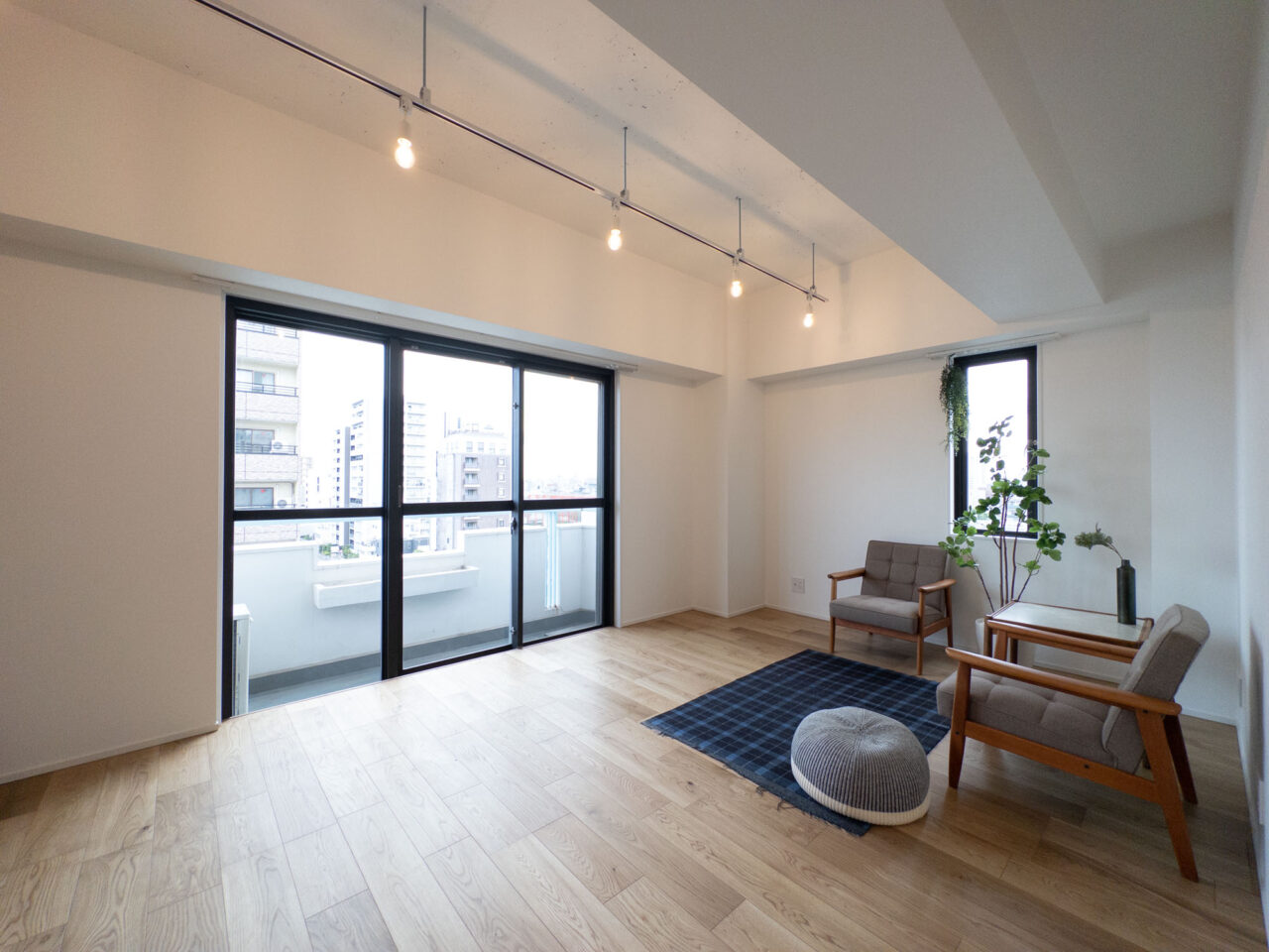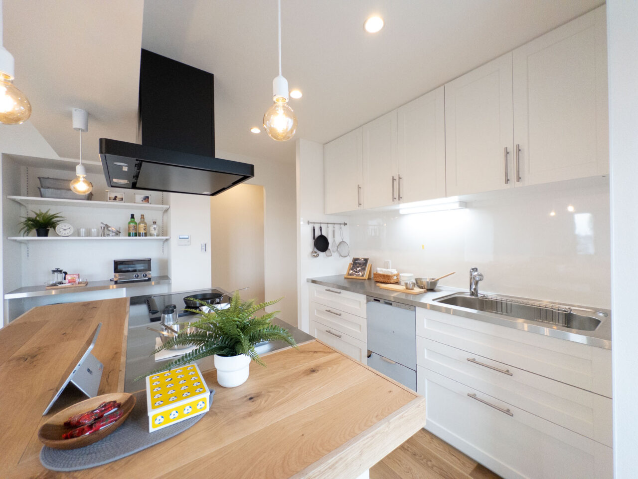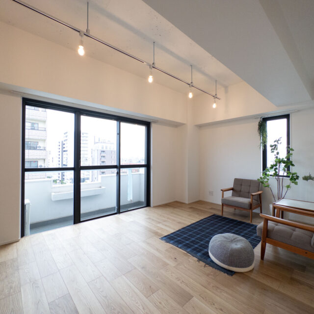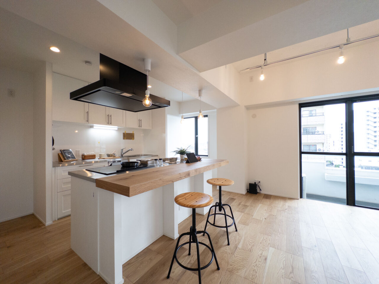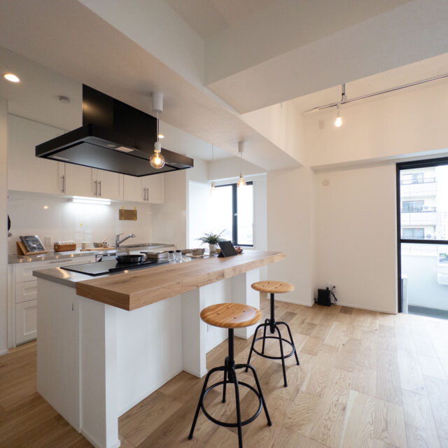 大井町まで2駅、五反田まで3駅、徒歩5分圏内にはOKストア、ユニクロ、少し足をのばせば戸越銀座や武蔵小山も徒歩圏の日々の暮らしが便利な立地です。建物はS49年竣工、ゆとりのあるロビーが設けられた設計、1Fはすべて駐車場、2010年・2019年にそれぞれ耐震性を強化する工事を実施しています。室内は2.76mの高い天井が開放的なリビングと大型アイランドキッチンが魅力の約75㎡の2LDK。パントリーとカップボードも備えた回遊性のあるアイランドキッチンは家族の集まる暮らしの中心です。