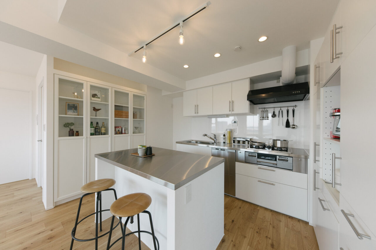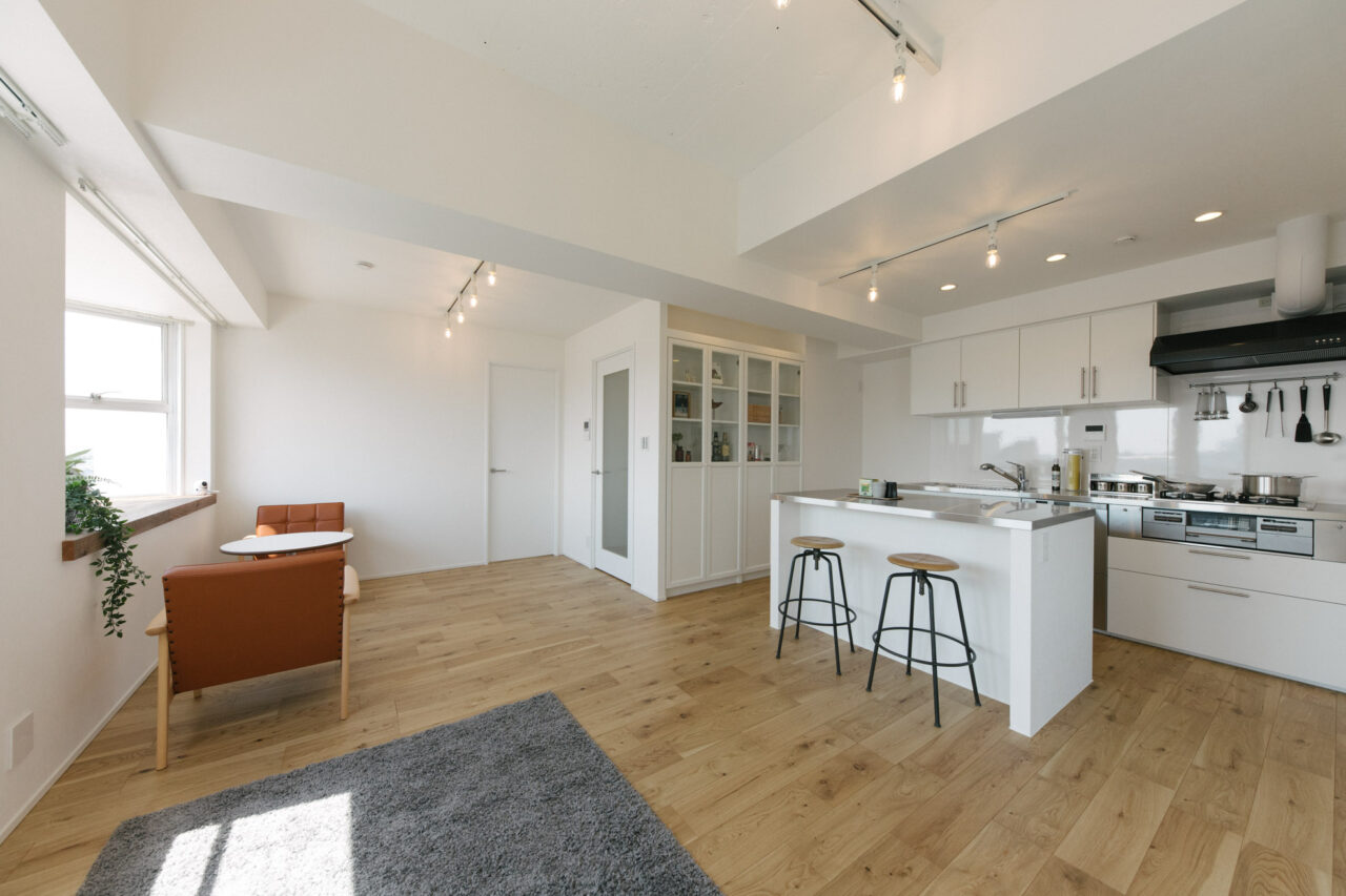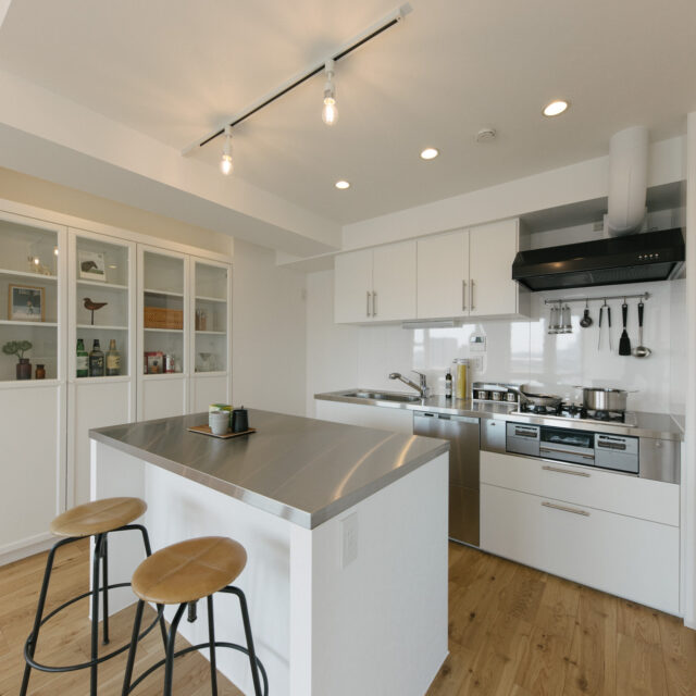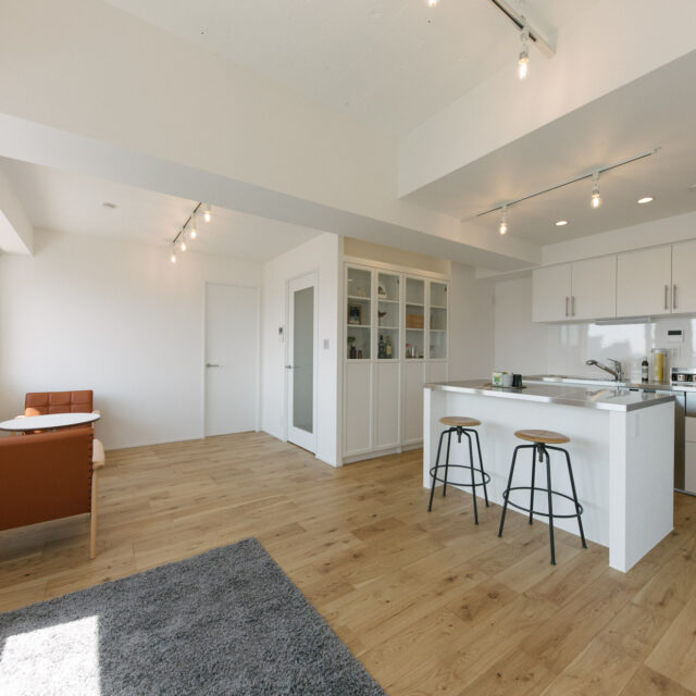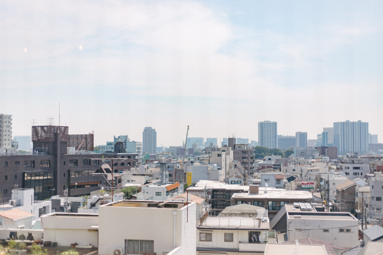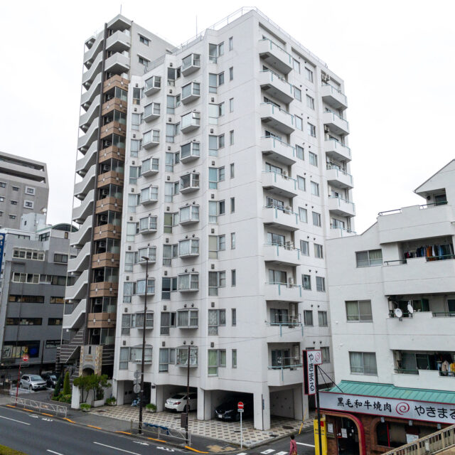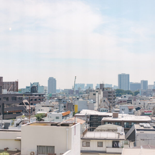 大井町まで2駅、五反田まで3駅、徒歩5分圏内にはOKストア、ユニクロ、少し足をのばせば戸越銀座や武蔵小山も徒歩圏の日々の暮らしが便利な立地です。建物はS49年竣工、1Fはすべて駐車場、ゆとりあるロビーを設けた設計は、高度経済成長期の庶民の憧れであったマンション生活を想起させてくれます。室内は国道と反対向きだからとても静か、遮るものがないスコーンと抜けた東向きの眺望は気持ちがいいだけでなく、毎日ご来光が拝めるなんともありがたいお部屋です。キッチンはアイランドカウンターをくるくる回遊しながら作業ができて、みんなで料理をしたくなる動線です。収納も大小さまざまなバリュエーションがあり、ここに住む人の暮らしをスッキリさせてくれます。