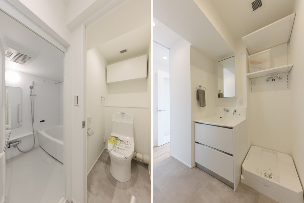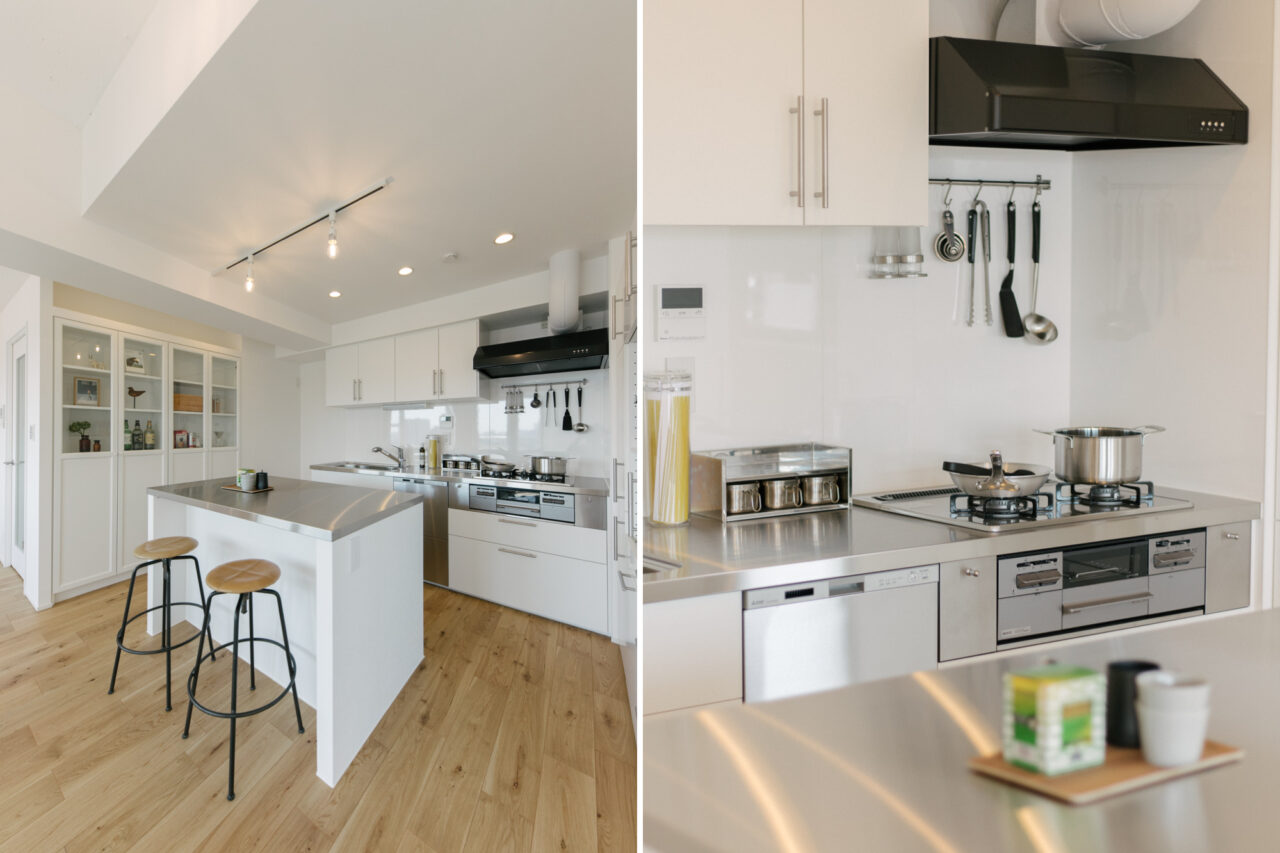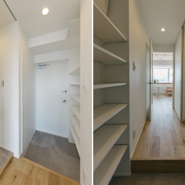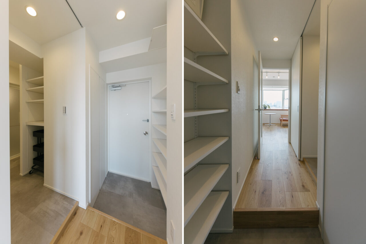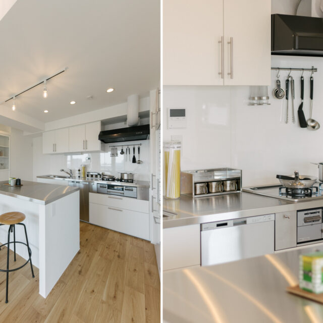 大井町まで2駅、五反田まで3駅、徒歩5分圏内にはOKストア、ユニクロ、少し足をのばせば戸越銀座や武蔵小山も徒歩圏の日々の暮らしが便利な立地です。建物はS49年竣工、1Fはすべて駐車場、ゆとりあるロビーを設けた設計は、高度経済成長期の庶民の憧れであったマンション生活を想起させてくれます。室内は国道と反対向きだからとても静か、遮るものがないスコーンと抜けた東向きの眺望は気持ちがいいだけでなく、毎日ご来光が拝めるなんともありがたいお部屋です。キッチンはアイランドカウンターをくるくる回遊しながら作業ができて、みんなで料理をしたくなる動線です。収納も大小さまざまなバリュエーションがあり、ここに住む人の暮らしをスッキリさせてくれます。
