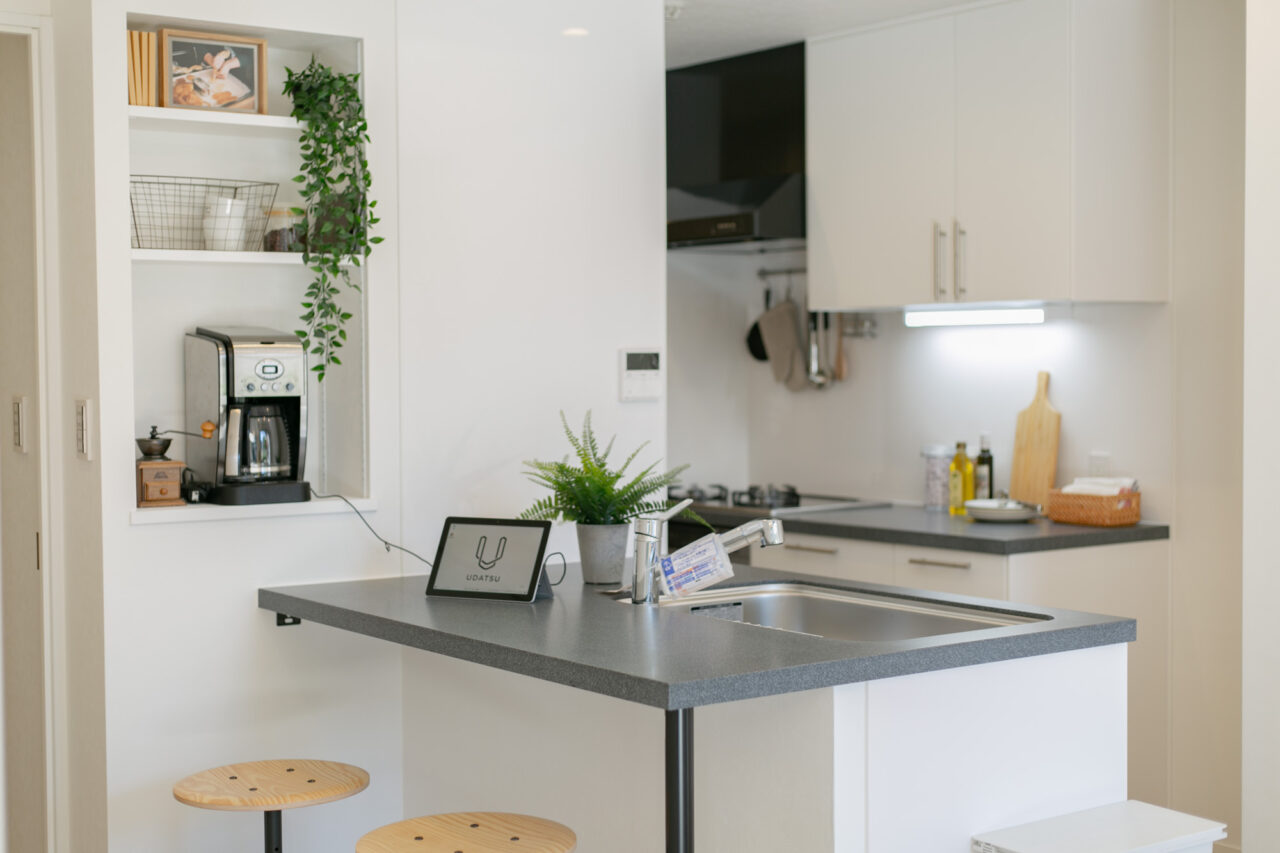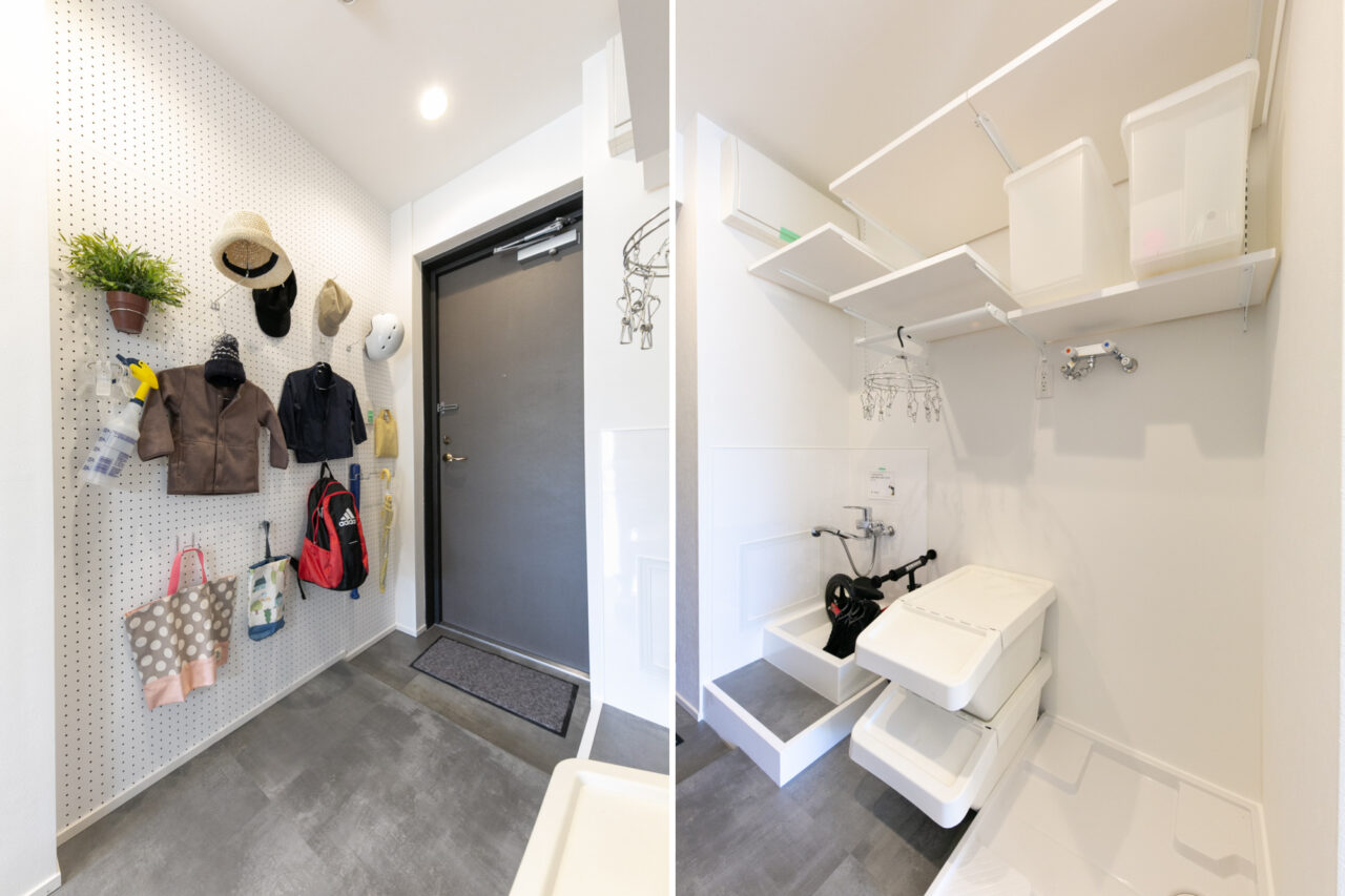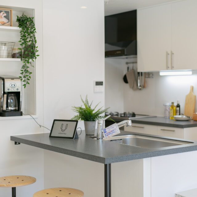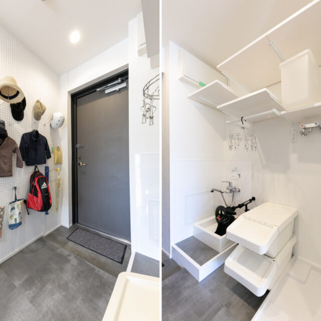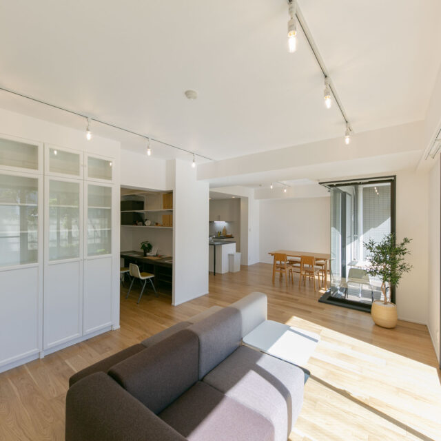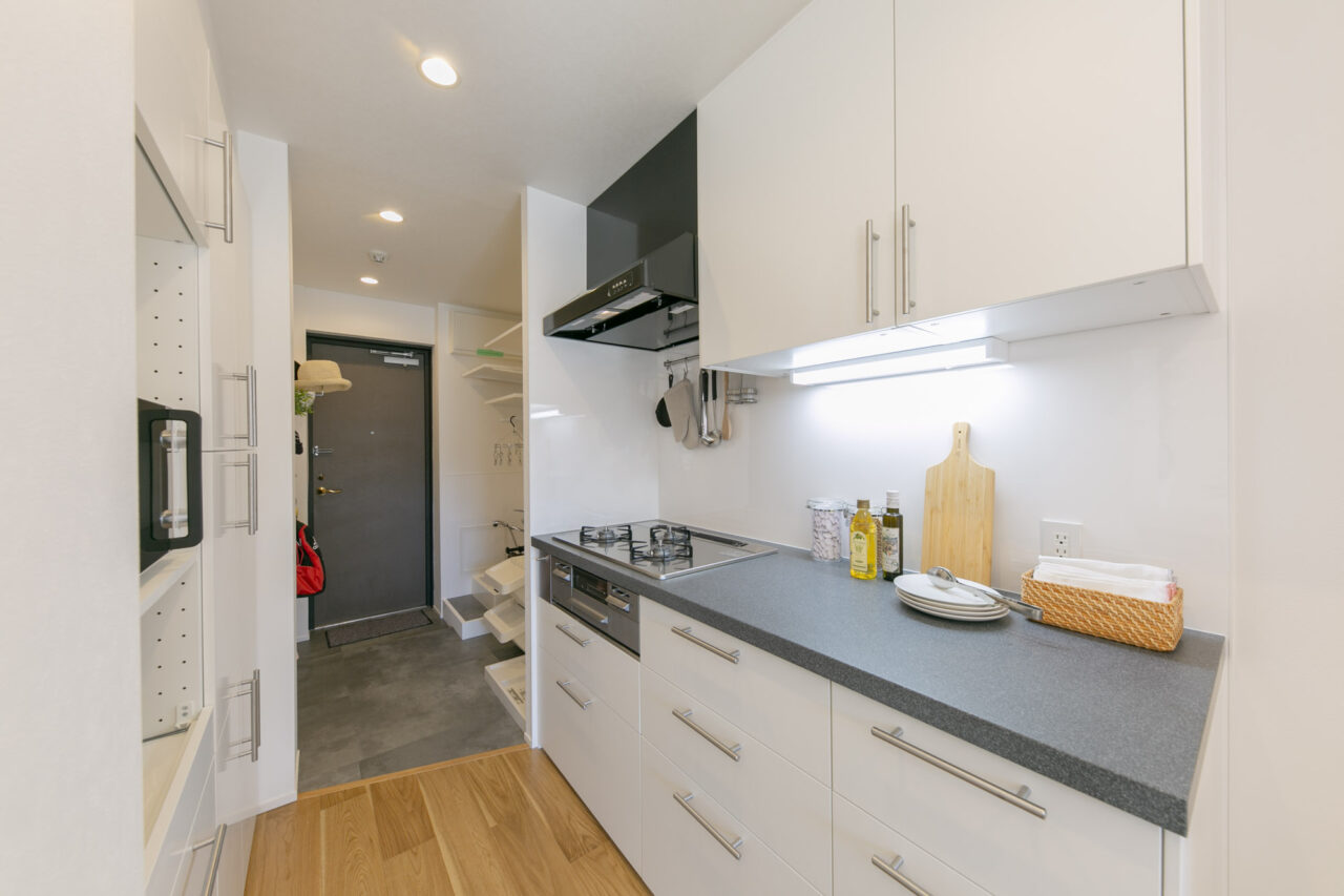 閑静な住宅地にどっしり構えた低層の4階建、中庭を囲むように配置された回廊型の建物は、エントランスホールから部屋までの明るいアプローチが開放的な気持ちにさせてくれます。お部屋は1階の専用庭付きの3LDK ∔ スタディスペース。その日の気分でテラスのウッドデッキでアウターダイニングを楽しめます。玄関横にある勝手口からの動線は、屋外用シャワー付きパンと洗濯機のランドリースペース→キッチンと効率的に家事をこなせれば、余ったその時間は家族の暮らしを豊かにしてくれるかもしれません。
