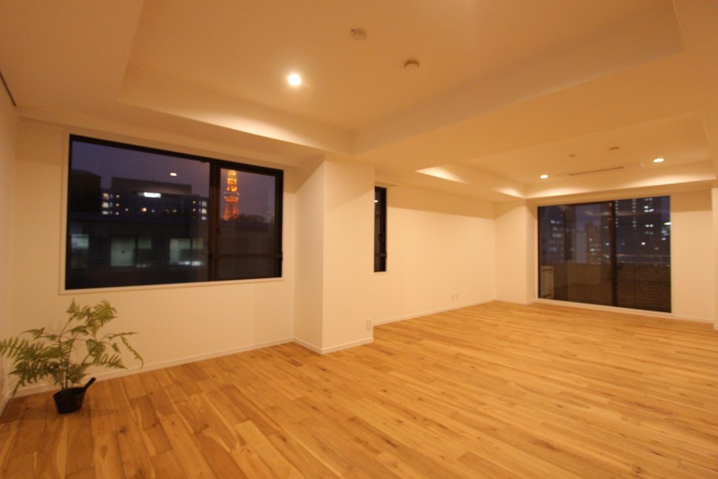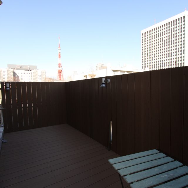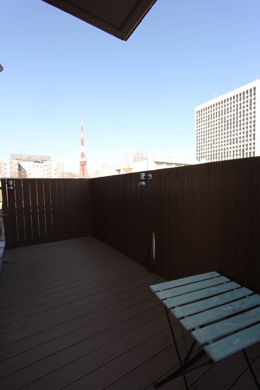 北東向きの角部屋ですが、窓が広くとられているので暗さは感じません。3階にあるので窓から下を見た感じが高すぎず、でも程よい見晴らしがあります。2つのベッドルーム、リビングルームのベランダ、そして先ほどのウッドテラス…実はその全てから東京タワーが見えるのです。暮らしの中でふと外を見ると景色に東京タワーが溶け込んでいるというのはなかなか贅沢です。