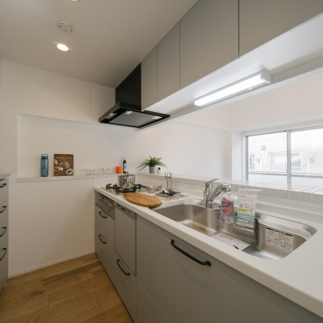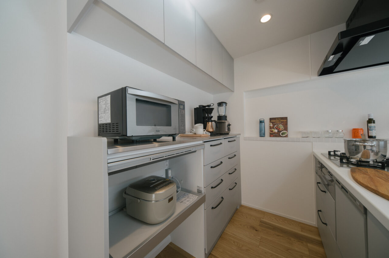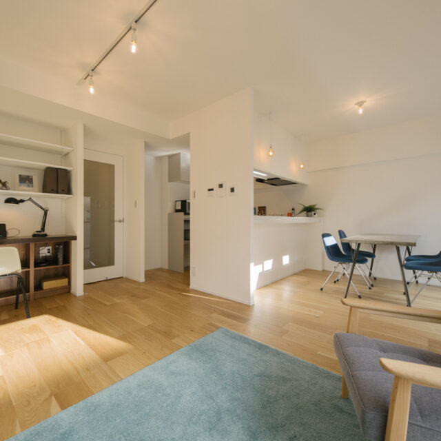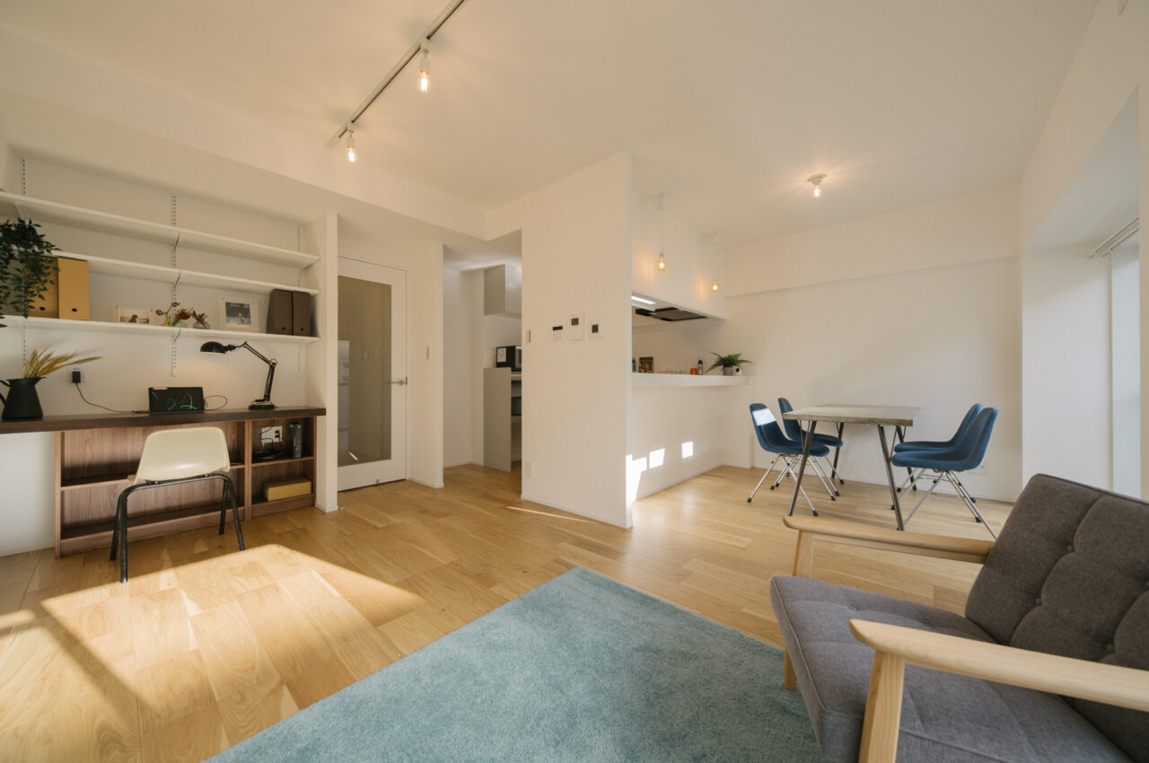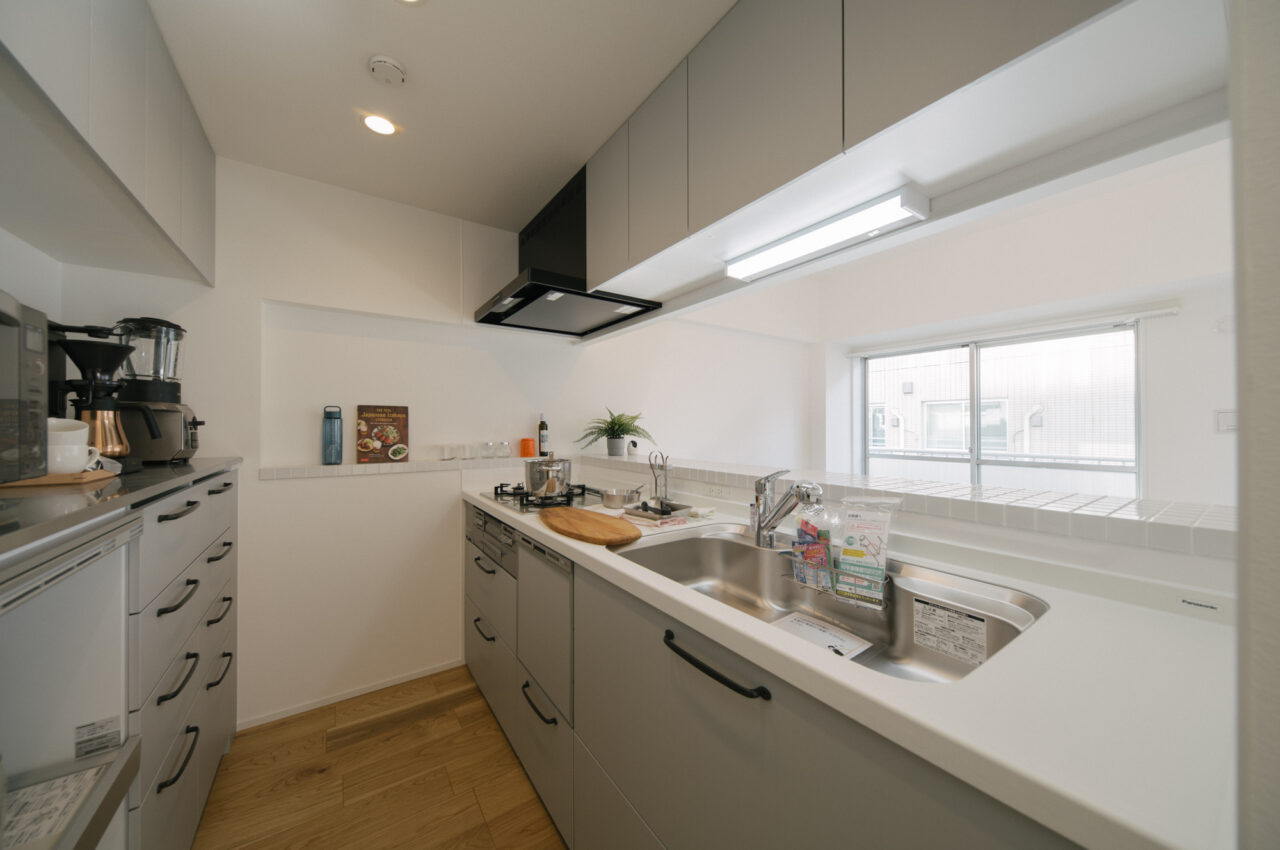 エキナカ、駅前が再開発でリフレッシュされた用賀駅から徒歩5分の閑静な住宅地です。建物は4階建ての2階部分、EVはありません。充分な広さの水回り設備とセミオープンで機能充実のキッチン、リビングにワークスペース、必要な収納等、暮らしの機能がそつなく盛り込まれたお部屋です。