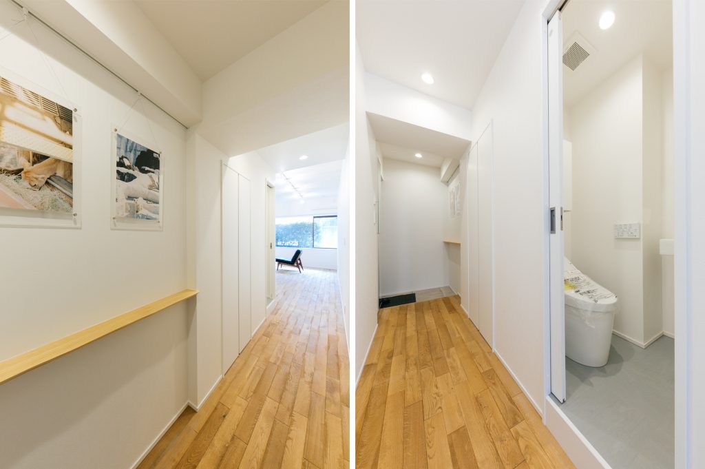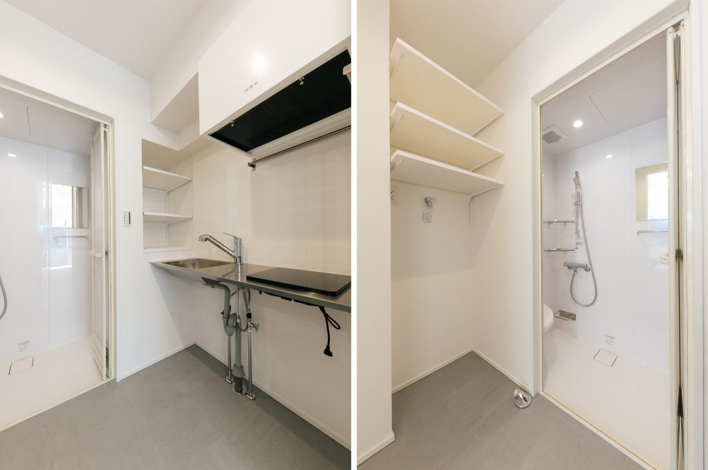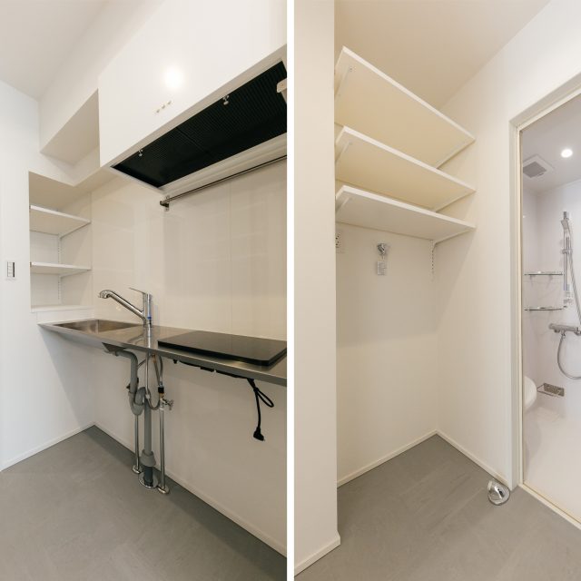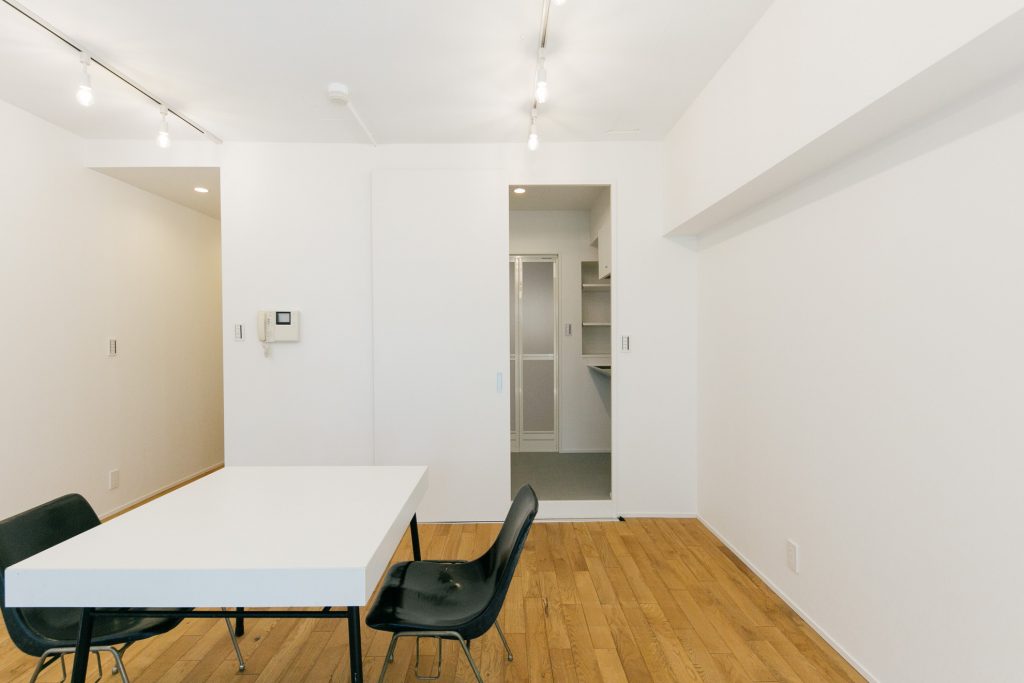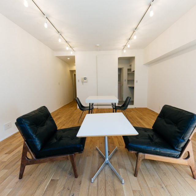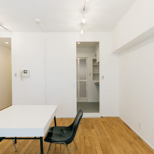 水回りはギュッとコンパクトにまとめ、ダメージ加工オークフローリングとRC現し天井のシンプルな空間は、クリエイティブな仕事をするスモールオフィスとか、モノを持たないミニマリストの暮らし、などがバチっとはまるお部屋です。1F の事務所用区画にシャワーユニット備え、居宅へと用途変更登記も完了しており、住宅ローンもご利用いただけます。閑静な超一等地の広いワンルーム空間を、あなた色にカスタマイズしてみませんか?