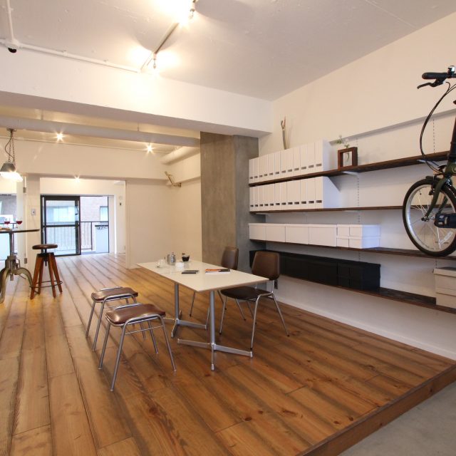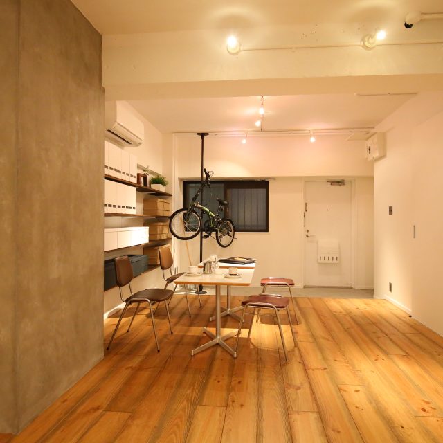 ちょっとアーバンライフな暮らし、アパレル企業のセカンドオフィス、美容系サービステナントのようなユーザーがターゲットです。アンティークフローリングの床、大胆な間仕切があっという間にできてしまう動く壁 「スライディングウォール」 があることで、住むもよし、働いてよし、遊んでよしの「3方よし」の暮らしを楽しんでください。