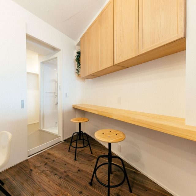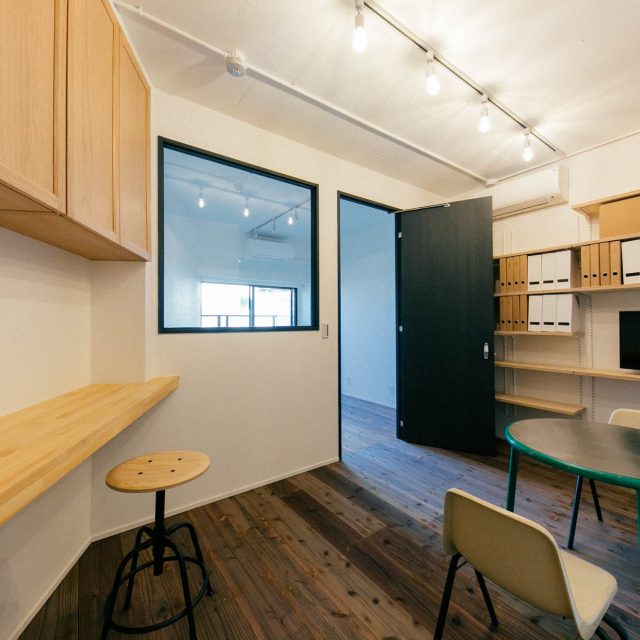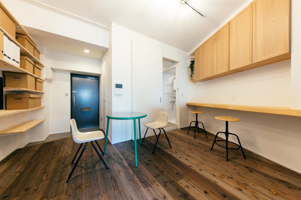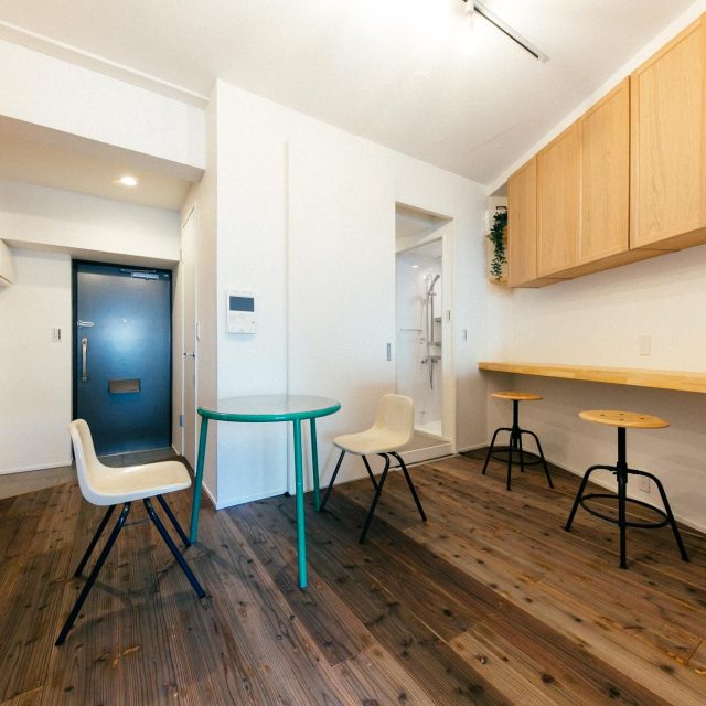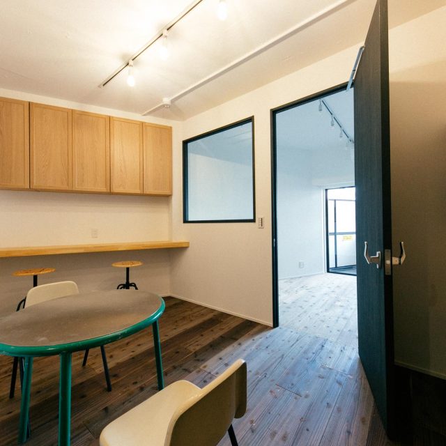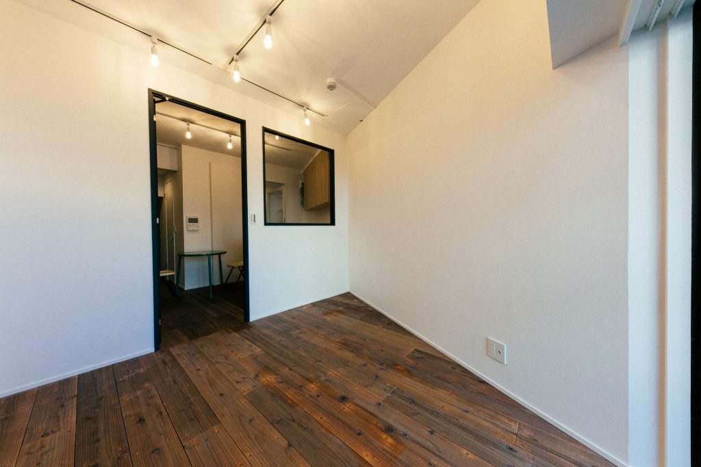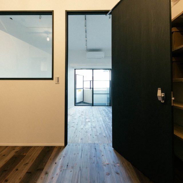 建物は、手厚い修繕が繰り返されてきていることで、築後38年の年月を経て風格が備わったヴィンテージマンションです。室内は、無垢足場板の床と躯体現しの天井で武骨な空間に仕上げ、水回りはぎゅっとコンパクトにまとめ、居住空間にスペースを配分した楽しい変形プランです(売買・賃貸同時募集中)。