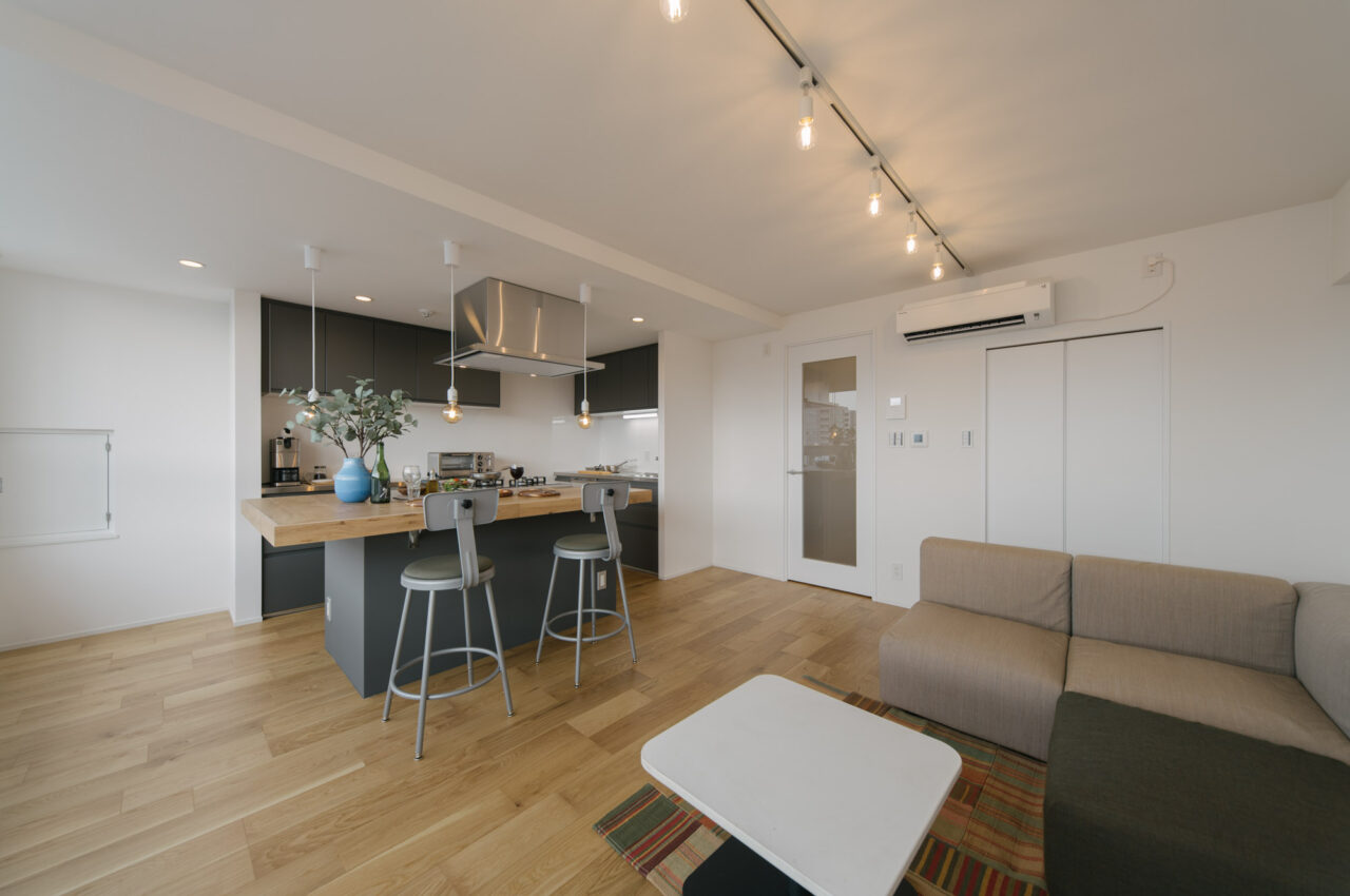 1969年竣工、商業複合マンションの草分け的存在の湯島ハイタウンは55年の時を経て、低層階の個性的な店舗、適宜繰り返されてきた修繕、外壁に設置されたおびただしい数の室外機等、異彩と風格を醸し出しています。室内は、カウンターダイニングが楽しめるⅡ型アイランドキッチンが特徴的、LDKからは湯島天満宮を見下ろし、寝室からは不忍池を望む眺望が代えがたい魅力のお部屋です。