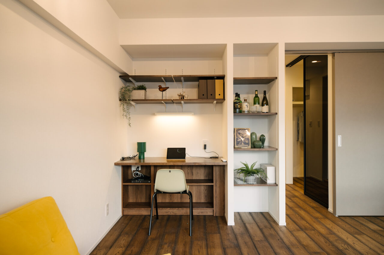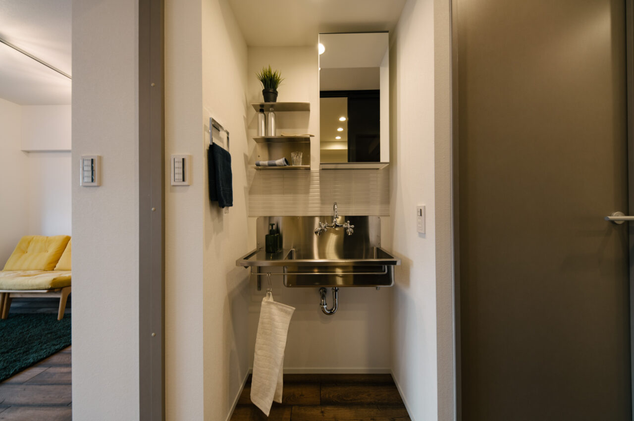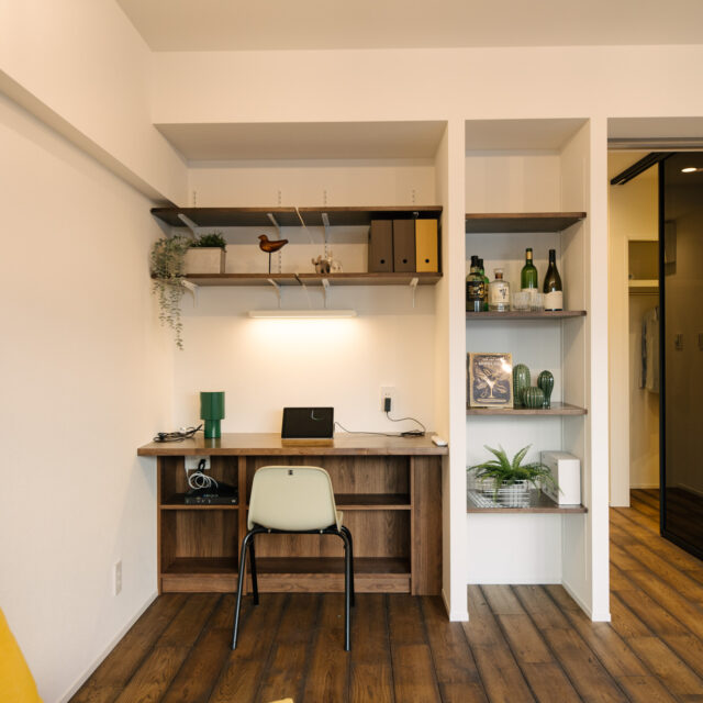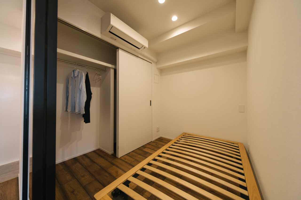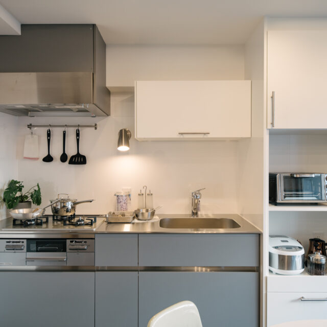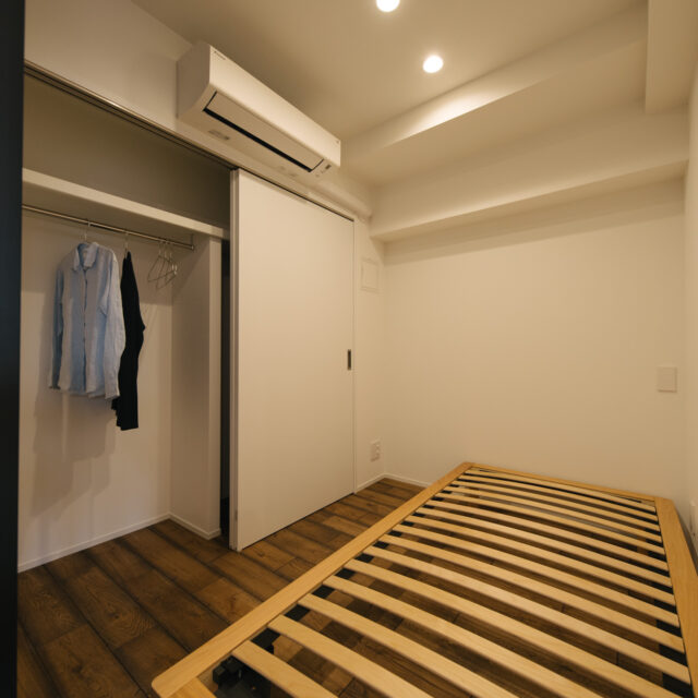渋谷・代官山・三軒茶屋がお散歩圏、高感度のショップや個性的な飲食店が点在し、利便性と彩りのある暮らしが楽しい立地です。山手通りとR246どちらからも少し奥まった住宅地、建物は築49年超ですが、4年前に大規模修繕も完了し適宜必要な修繕が繰り返されています。室内はベッドスペース、水回り設備はミニマムサイズで、面積の大半をLDKに割り振りました。バルコニーから階段で一段下がった先の専用庭では、家庭菜園などを楽しめるお部屋です。