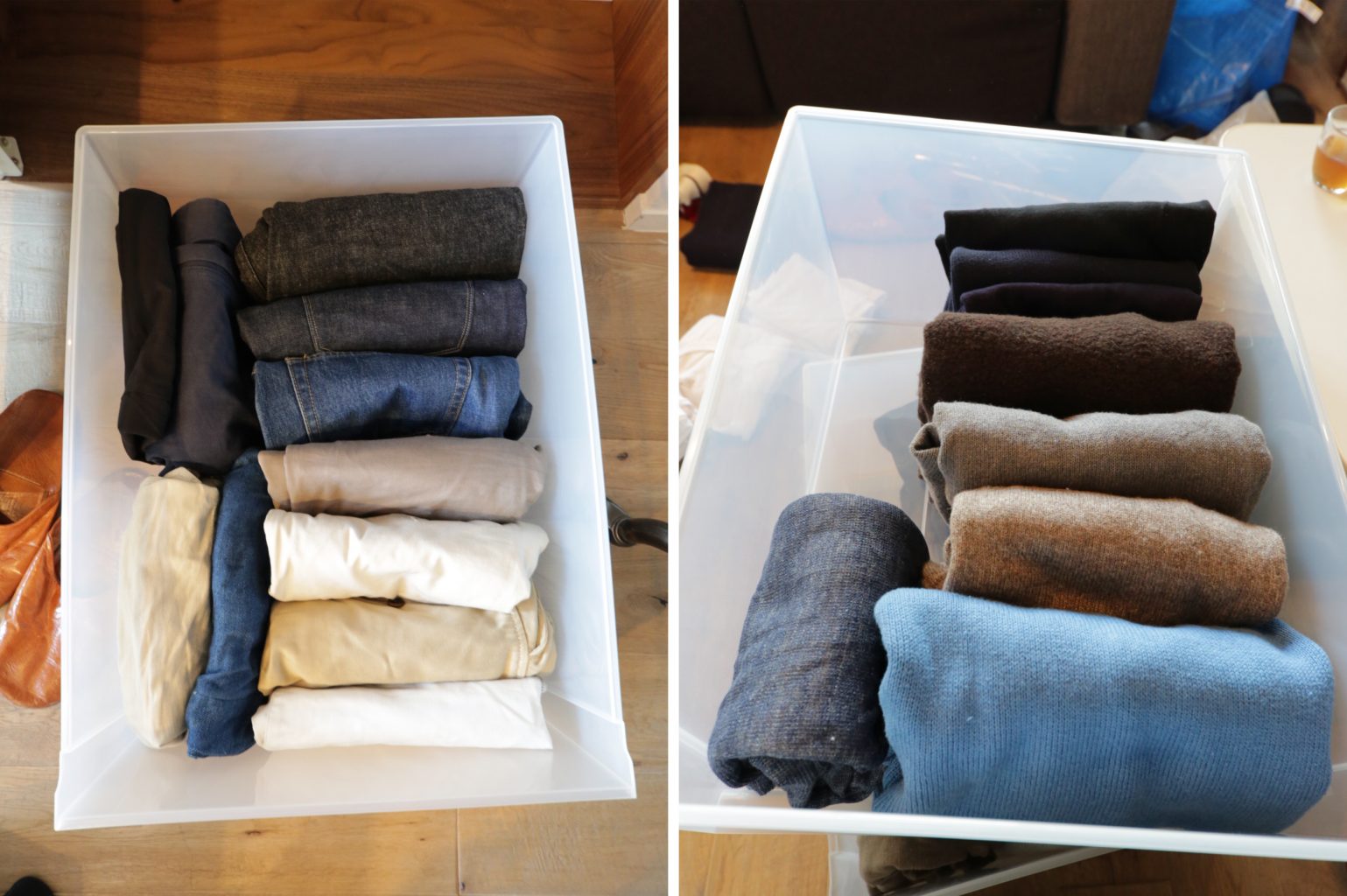 置く時のモノのたたんだ後の体形を同じように決めてあげて、何がどこにあるか一目でわかるようにする。また、ホントにときめくモノだけなら、大切に扱う気持ちになりますしね。