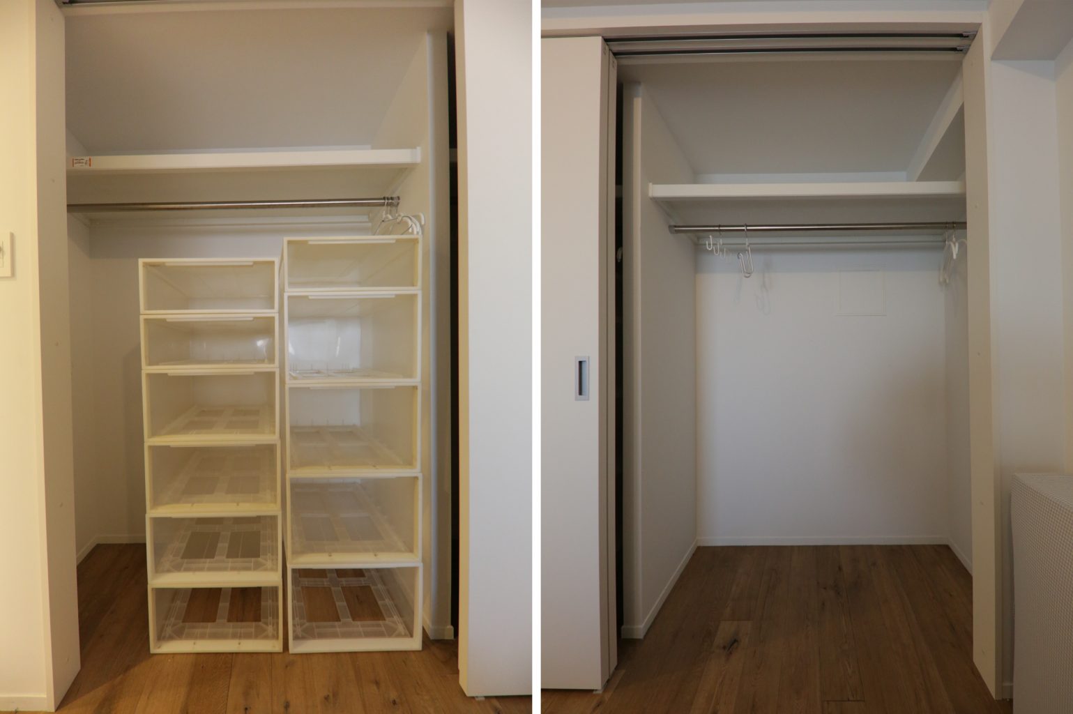寝室のクローゼットは2間の大きさ、それ以外にハンガーラックがひとつ