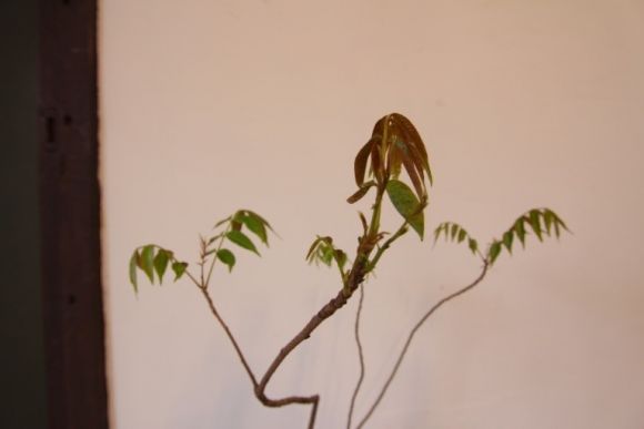 また、ある春の日の一幕、事務所内で、植物の春の芽吹きを楽しむ会(鉢植えを置いて、ただ眺めるだけのことですが)をやりました。ハゼの芽吹きを愛でていると、岡本が。「あっ、これ知ってます。天ぷらにすると美味しいやつ、名前なんでしたっけ?」「えっ、ふきのとう? うど?」「ちがうちがう、えーっと・・・」「たらの芽?」「あっ、それそれ!」