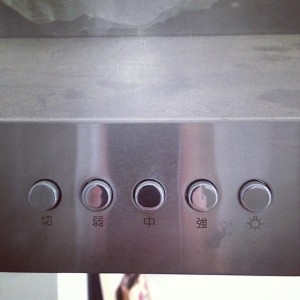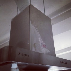 あこがれのアリアフィーナのレンジフード、ステンレスで空間がひきしまります。天井高の空間にはやっぱりこれですね。