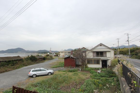国道沿いに面する2階と、2.5mほど下がった海岸にそのまま行ける1階、その前方の荒れた敷地と向かいの朽ち果てた物置までがこの物件です。近隣には徒歩7-8分の岩井海岸そばの国道沿いに、スーパーODOYA、コンビニ、ドラックS、100均などが集積しています。また、車で5分程度の鋸南富山インター隣接の道の駅「冨楽里ふらり」