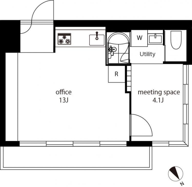こちらは事務所利用可能です。事務所なのに、充実の水周りが特徴です。また、北向きなのでアトリエにも最適。北向きだとお部屋が暗いのでは?と心配になりますが、このお部屋は角部屋なので明るいのです。