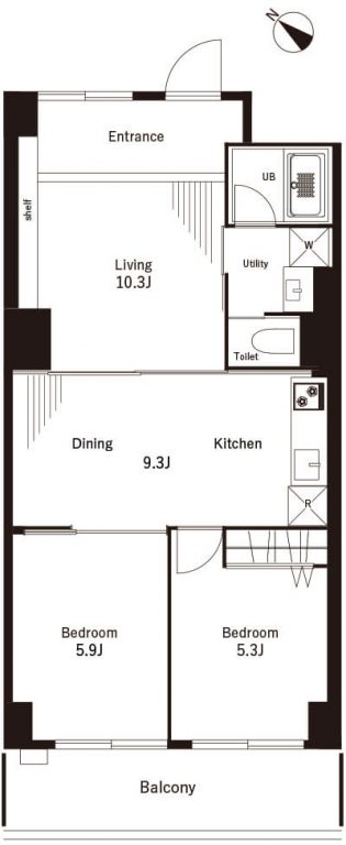 ガラスの引き戸で仕切られた居室は、バルコニーに面しているので採光のため、ガラスの引き戸を開け放って広く使用するのも良いですね