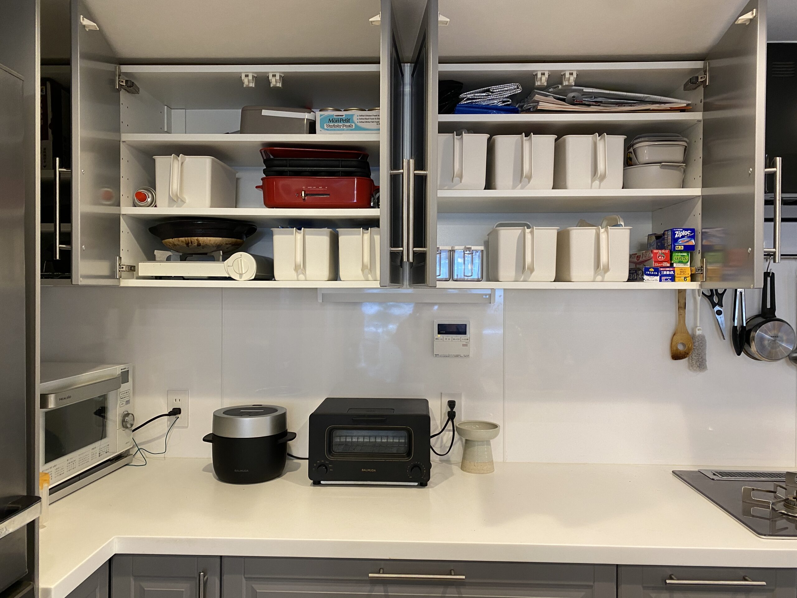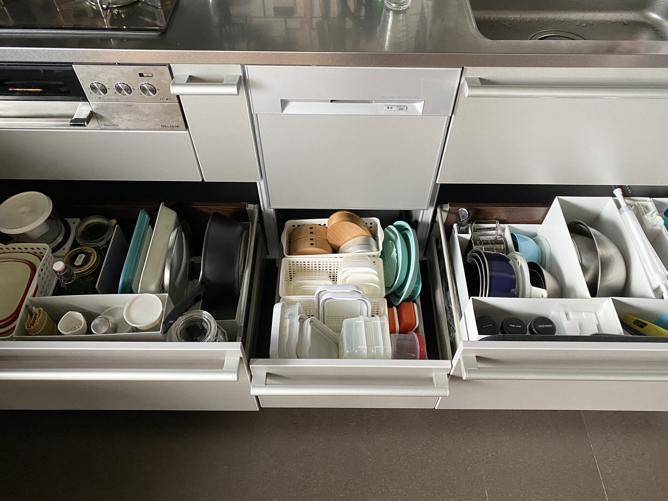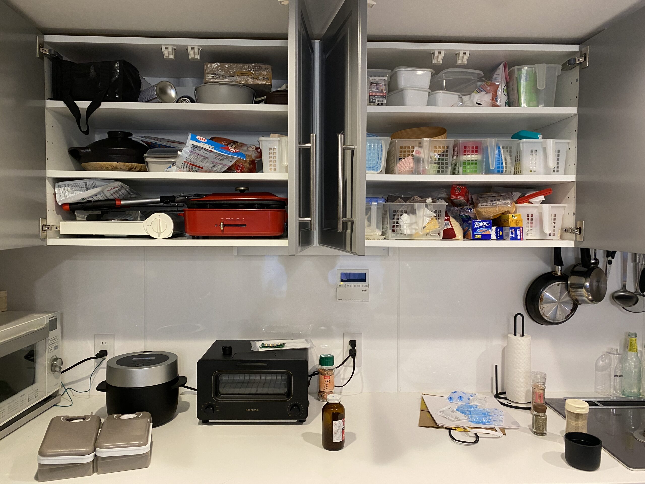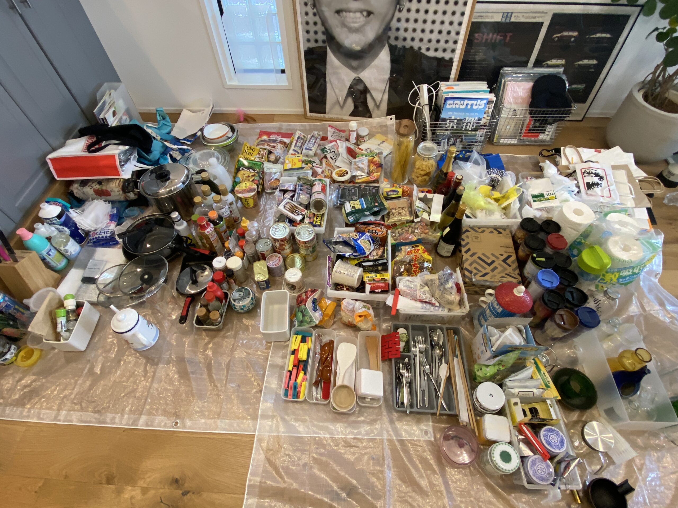 賞味期限切れの食材が眠っていた、使用頻度が低い家電が使いやすい場所に置いてある、逆によく使うのに取り出しずらい場所に収納してある、同じモノが何個も大量に、あるはずのフタがない保存容器など、全部出してみるからこそ様々な発見が。