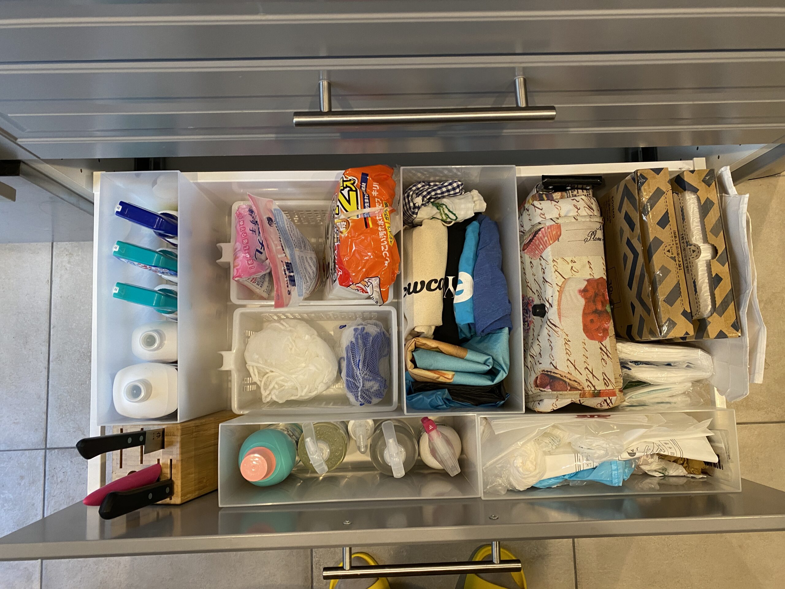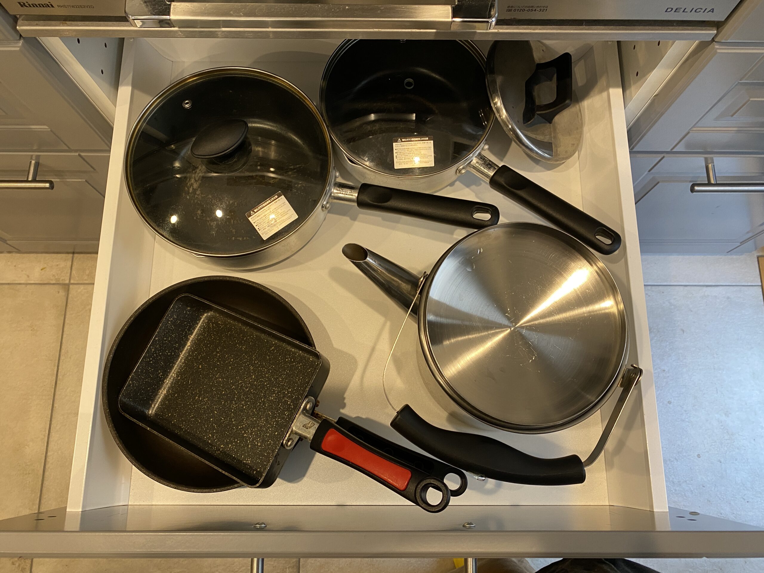 ▲我が家のキッチン引き出し収納、使いたいものがすぐ取れる仕組み