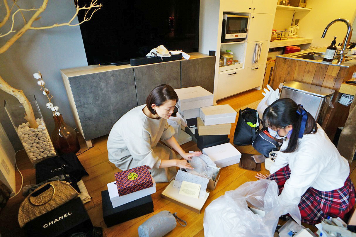 ▲書棚の次に奥さまがチャレンジしたのは、大切に保管していたブランドシューズの靴箱の“ときめき”チェック。靴箱は引き出しやクローゼットの中の収納ボックスとして二次利用できるため、すべて“さよなら”しなくても次の活躍の場が待っています。