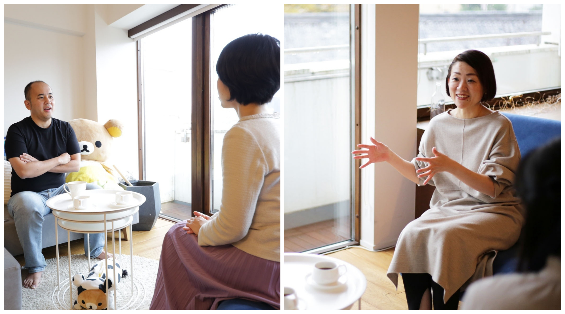 ▲10時からレッスンがスタート。すぐに片づけに入るのかと思いきや…ご夫婦別々に30分ほど時間をかけて武田さんがヒアリングを実施。一人がヒアリング中は、もう一方は席を外していただくなどの徹底ぶり。「ご家族が円満に片づけるには、まず自分の所有物に集中するのがコツ。共有物はその後相談しながら行います」一見片づけとは何も関係ないように思える子どもの頃に大好きだったことや、今のお仕事や暮らしぶりについて話すうちに、Mさんご夫妻の緊張感も緩んでいきます。