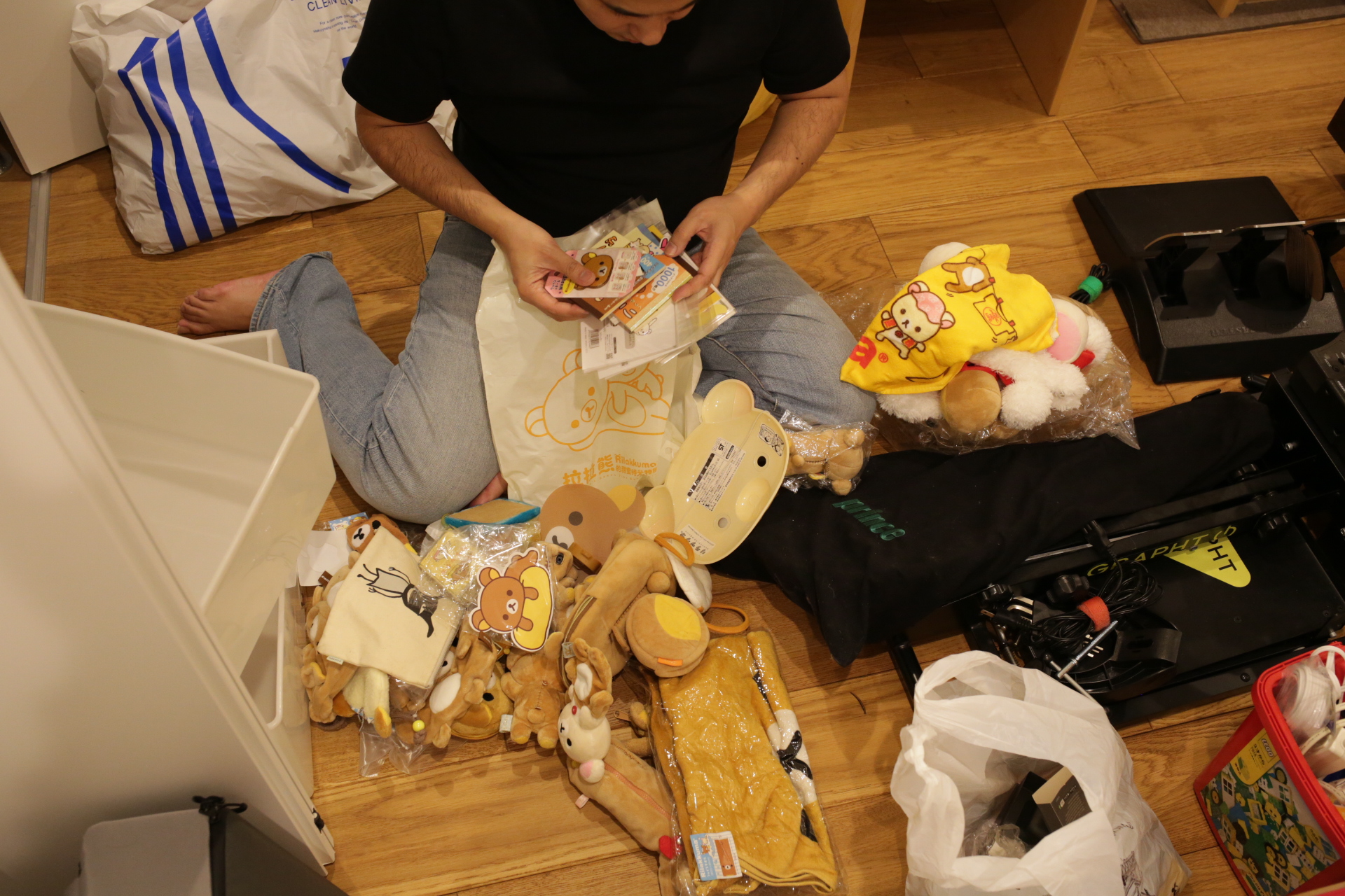 ▲ご主人は大好きなリラックマグッズをチェック。思い出が詰まった名残惜しいアイテムは「いったん後回しにして、最後に思い出品でまとめチェックする」でOK。「こうして作業を続けていくうちにどんどん感度があがっていくので、最初は迷っていても後で見直すと“さよなら”できるモノもあります」と武田さん。ちなみに、こんまり®︎メソッドではモノに対するリスペクトの気持ちを大切にしているため、「捨てる」と言う言葉はあまり使わず、「手放す」「お役目を終える」などと表現することが多いようです。