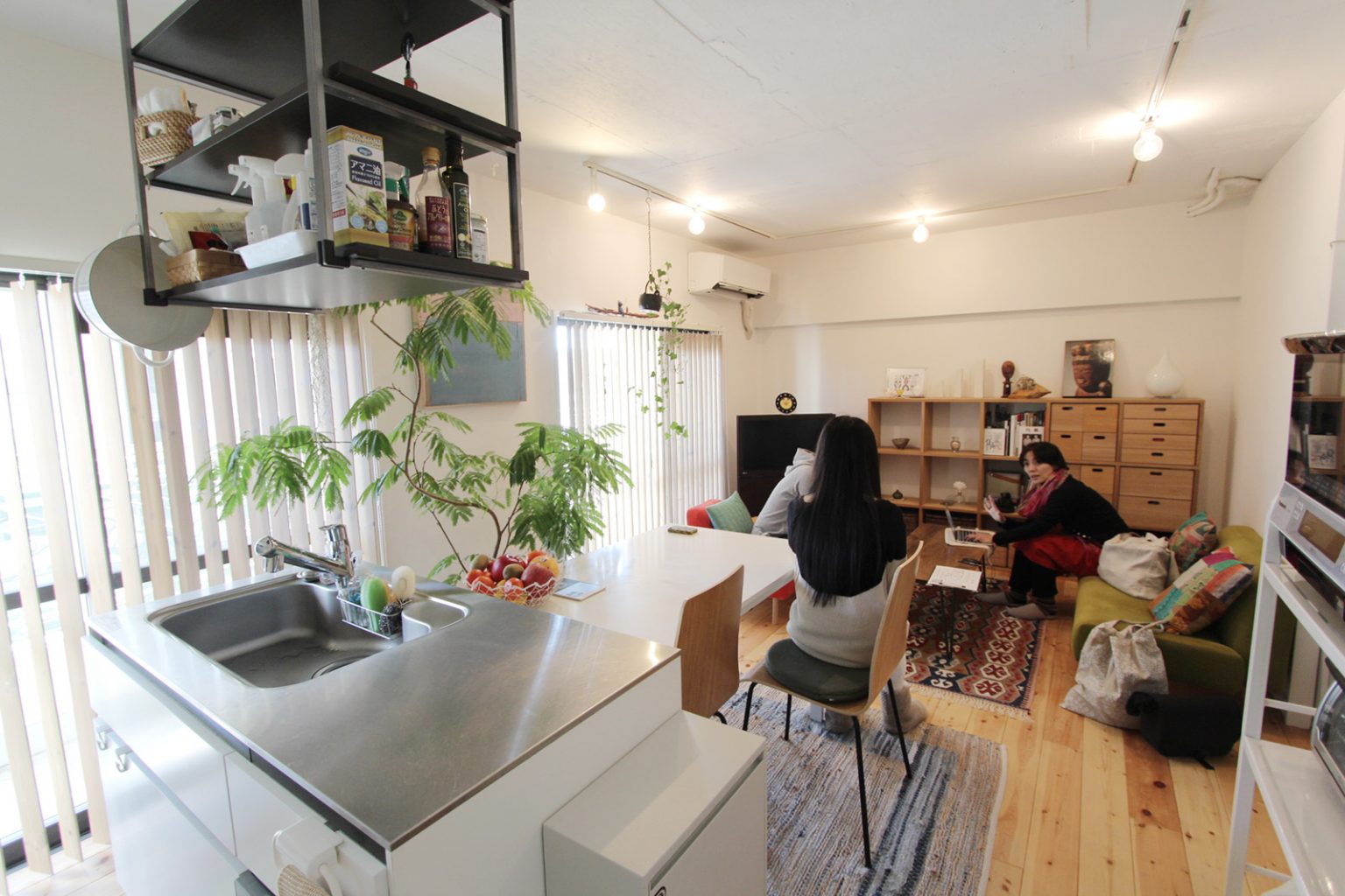 あえてマイナス点はないですか?と伺うと、ようやく出てきたのが、キッチンに備え付けのグリルが片面焼きで、お魚をひっくり返して焼かないといけないことと、洗面台で顔を洗う時に頭がキャビネットに当たってしまうということだった。この二つはゆくゆくは変えたい点。 そんな話から、これから自分たちでもリノベーションに挑戦したいという話題に。壁を打ちっぱなしにして塗装してみようとか、階段を好きな色に塗っちゃう?とか、夢は広がる。