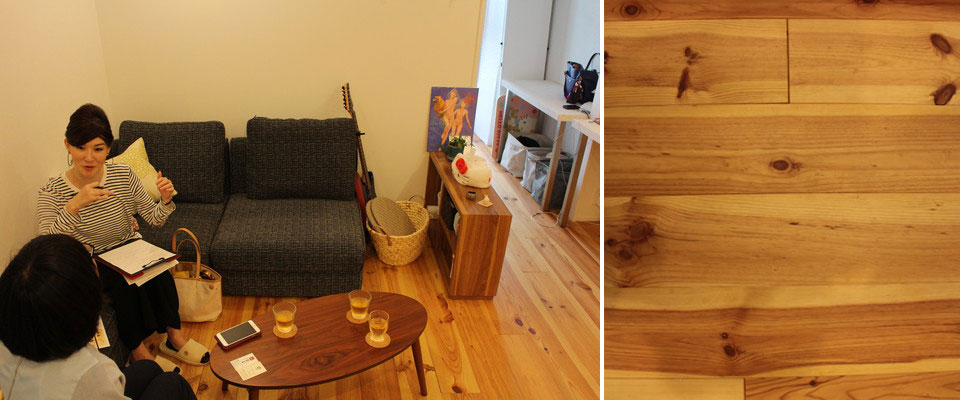 一軒家を探していたときから、「建物」に対してはもちろんのこと、「建物を作った会社のコンセプトに興味があった」というSさん。UDATSUのホームページで過去のリノベーション事例などを確認し、モノづくりへの想いに共感が持てたことから見学の申し込みをすることに。「自分の仕事のときにも、常に考えているのが“持続可能であること”。一回作って、捨てて、終わり、という大量生産・大量消費の社会に対してずっと疑問を持っていたので、資源を有効に使っている会社であることが住まい選びの第一条件でした。UDATSUさんのコンセプトは、まさにそこがピッタリだったんですね。古い建物に新しい息吹を吹き込む、そして、それがちゃんと適正価格で行われている・・・その部分にホレました(笑)」