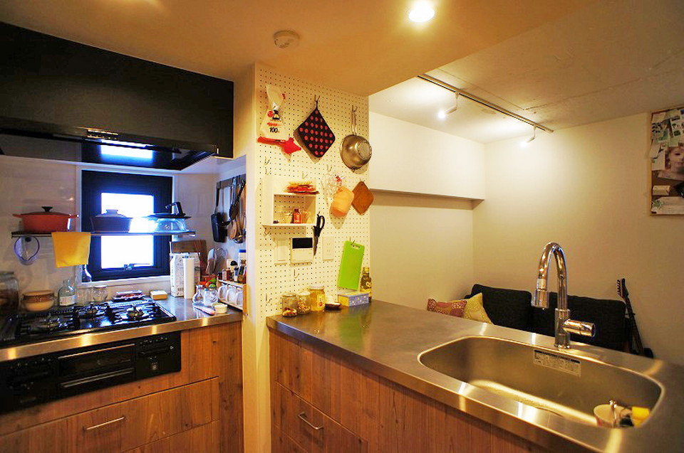 Sさんがマンション購入を決断したのは27歳のとき。当時暮らしていた会社の独身寮は『27歳まで』という入寮規則があったため、 「そろそろ寮を出なくては」というリミットに迫られて住まい探しをはじめたのだとか。「最初は中古の安い一軒家を探していたんです。いま母がひとりで暮らしているので、いずれ母と同居することを考えつつ、将来の仕事の拠点として人が集まれるような場所を“セルフリノベーションで作りたい”と漠然と考えていました。でも、都内の一軒家は予算が合わず、郊外に広げて探してもなかなかピンと来る一軒家に出会えない・・・そんなときに、たまたまネット検索でステキな部屋の写真を見つけて“ここ、かわいい。マンションもいいなぁ!”と思ったのがUDATSUさんのリノベーション物件だったんです」