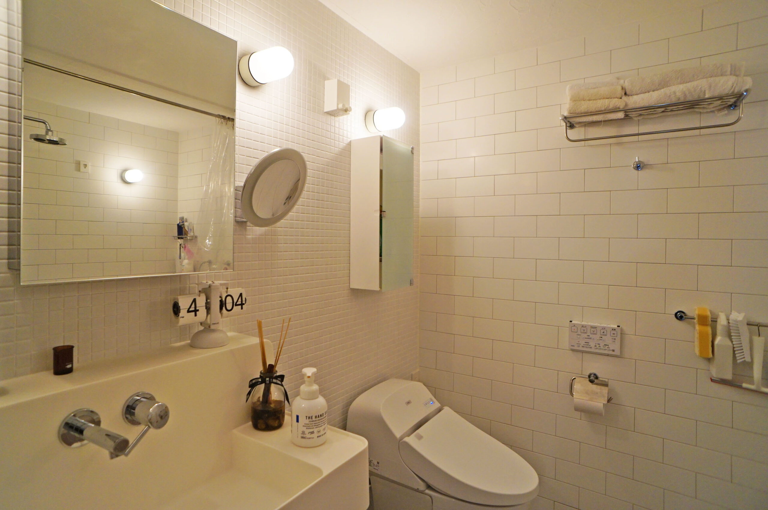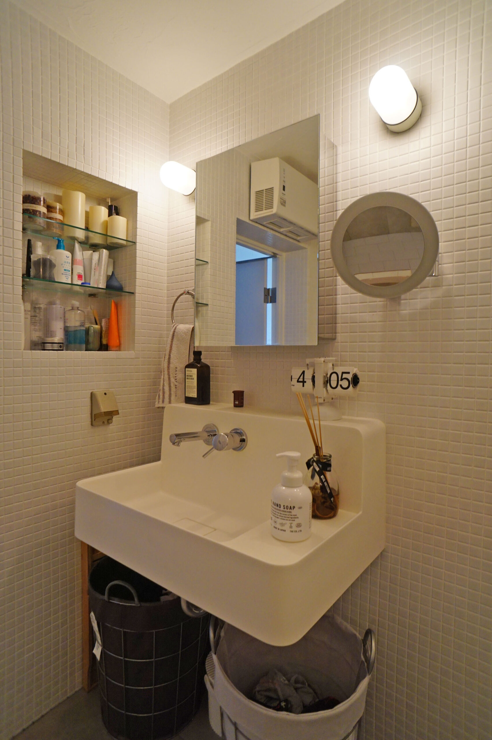 ▲「友達が遊びに来て洗面やトイレを使うと、みんな“バスルームがお洒落だね”と褒めてくれます」とSさん。ハンドソープなどの小物類もデザインにこだわってスタイリッシュなアイテムを厳選。