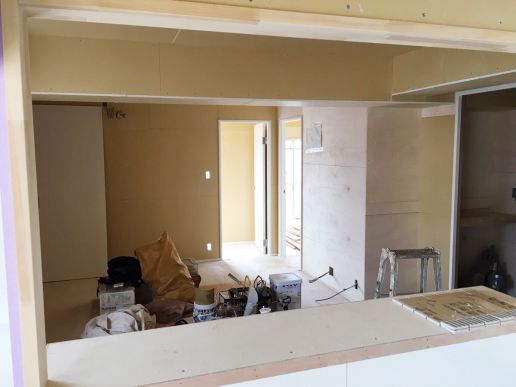 リビングから寝室を見た様子です。 今回天井は一度外して、再度天井を作り直しています。以前の天井より高くなっています。