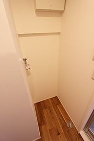 洗濯機置き場はパンを置かないスマートスタイルを選択。