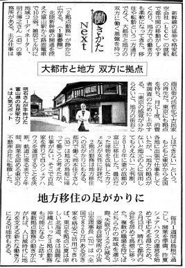若者の起業、スキマ時間のみ仕事をする主婦、女性の子育てを応援する大企業など様々な取り組みの事例が毎日のように紹介されている中で、ウチの元メンバー、今年の2月に退職した岡本も「2地域居住で、Iターンを実現」という内容で登場しました!