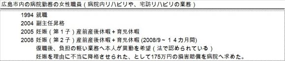 マタハラを受けたと訴えた女性の経歴を時系列で。