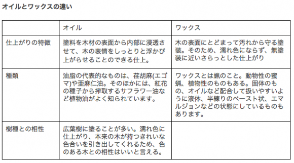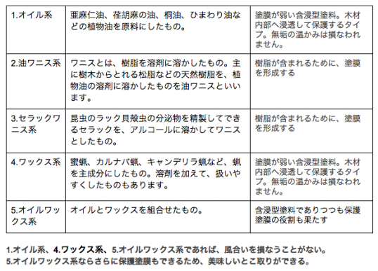 ウダツでは、「4、ワックス系」「5、オイルワックス系」をよく利用します。その違いをみてみます。