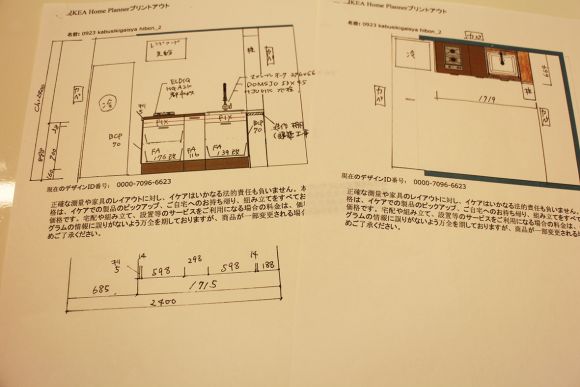 そして、現地調査が終わるとキッチン施工会社がIKEAのほうへ現地の情報を伝えます。さて、その情報がIKEAに届いたらついに発注可能となるわけです。この発注、そして現地調査の結果からの仕様の変更などは、IKEAはいっさい電話での変更がききませんから、店舗に行って行います。というわけで、店舗に行って発注します。スタッフの方に現地調査の終わったキッチンを発注しにきましたと言えば進みます。スタッフが現調結果を確認しながら、前回の見積もりから変更の必要があるかを調べ、必要があれば再度見積もりを作ってくれます。その場ではキッチン施工会社が現地調した結果を反映させたくわしいセッチイメージもくれます。それは、全体を取り仕切る施工会社へ見せましょう。