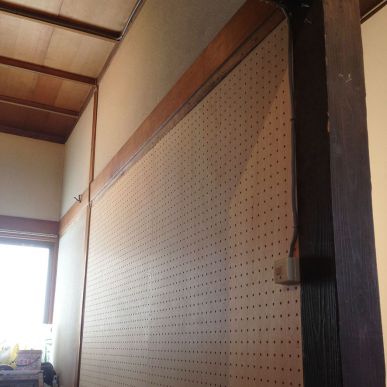 業務の効率化を考え、倉庫部分の改装をやることにしました。改装といっても押し入れ部分に棚を創作、壁に有孔ボードを設置したりなどです。