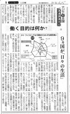 こんにちは、宮島です。先週から連載されている日経新聞の記事で、え?、と考えさせられるものがありました。「アジア10か国の20代の若者に対するアンケート調査をした結果」いったい日本の若者は、これからどうなってしまうのだろうか? と。ボクがそれを、たまたま出た調査結果として流し読めずに何かが引っかかったのは、自分の身の回りの出会いや出来事の中に、「確かに」と思い当たる節があったからなのです。アンケート調査の質問は、「何のために働いているのですか?」