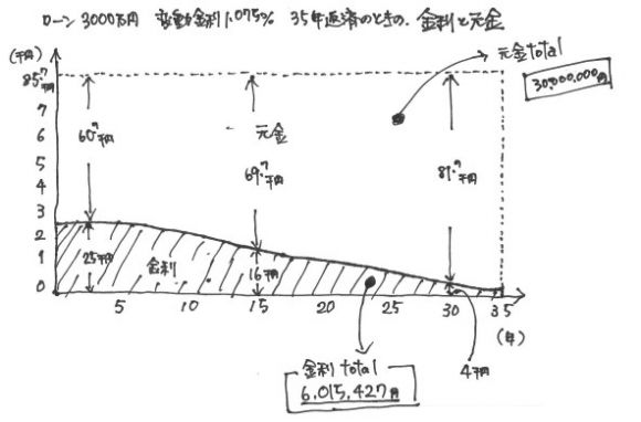 がいいのではないかと。これを借りれば、最後まで支払いが確定できます。フラット35で3000万円借りて、35年で支払うと、元金金利の総支払額 38,490,000円 うち金利合計8,490,000円(月額平均20,000円)3000万円の住宅に35年住んだとしたら、月2万円(金利負担)で住めちゃう、という、とんでもない好条件で調達できるのが、現時点での住宅ローン環境なのです。
