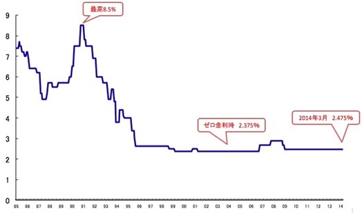 このグラフでの住宅ローン金利は、実際借りる金利とは違う「店頭金利」と呼ばれるもので、実際借りるときにはその人の信用力を多少反映させて、ココから1-1.7%前後値引きをして借りることが出来ます。