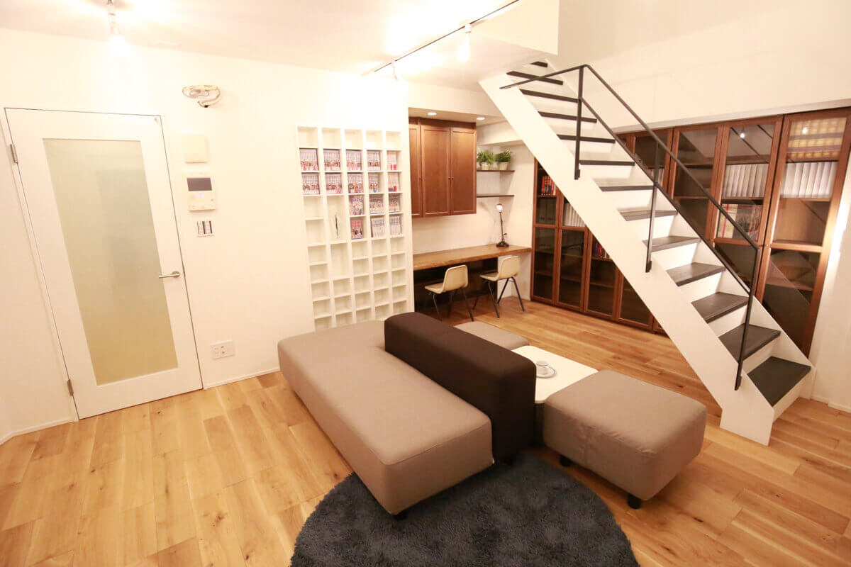 「今手がけている物件は築48年のマンションで、最上階の7階と8階につながるメゾネット。もともと間取りの真ん中にお風呂があったんですが、それを壊して広いリビングをつくるつもりで仕入れました」