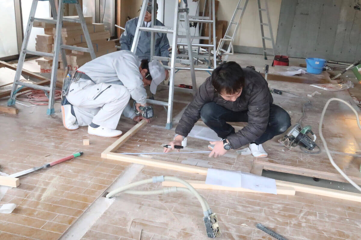 「仕入れのときに、もとの物件の床をトントンと叩いてみて、空洞があるのかコンクリートが直に張ってあるかを考えるんです。あとで実際に解体の現場に行くときは、答えあわせをしているような感じで」