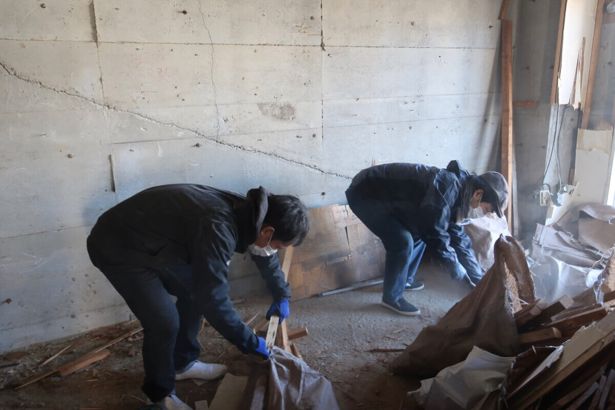 「入社初日から現場に行って、ベテランの職人さんたちと一緒に解体の作業や壊れた廃材の運び出しをやりました。緊張しましたけど、『やってみろ』って道具を渡されて。職人さんにコツを教えてもらいながら、自分で手を動かすのは面白いなと思います」