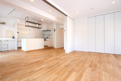 白い壁に、無垢材の床。余計なデザインがないから、どんな趣味趣向の人でも自分色の住空間を表現できる。お客さんは感度が高く、こだわりの強い人が多いという。