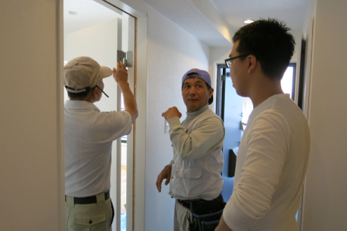 現場の雑用や清掃、材料の荷揚げ、休憩のときのお茶の買出しなど、とにかく自ら積極的に動く。その姿勢が職人さんに伝わることで、職人さんとの意思疎通がはじめて出来るのかもしれない。