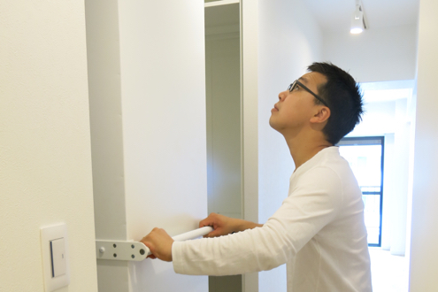 「たとえば、企画会議で、このスペースに動くクローゼットをつくる、と決まった物件があったんです。そんなことはやったことありませんでしたが、まあ、どうにかなるかな、と簡単に考えていました。最初は下にVレールを入れてステンレスの戸車をつけたら動くと思っていたんですが、大工に見せたら絶対壊れると言われて。そこからキャスターにしたり、ガイドをつけたり」