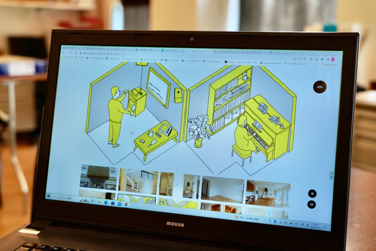 基本的にリモートで仕事を進めており、内見案内も物件に設置しているカメラとスマートフォンを使って遠隔で対応。また、宮島さんが物件を購入するときも、360度カメラを使って内見し判断しているのだとか。